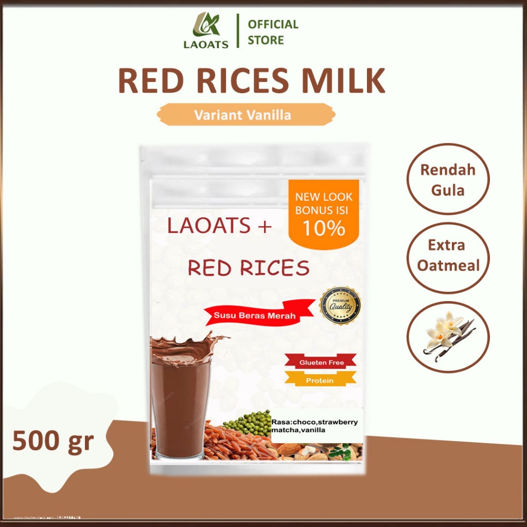 Laoats Red Rice Milk Plant Based Drink Premium Quality Vanilla 500gr