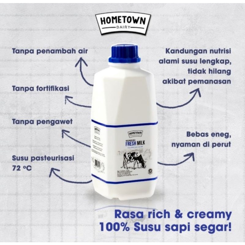 Susu Hometown Fresh Milk 1 Liter Susu Segar Kemasan 1 Liter