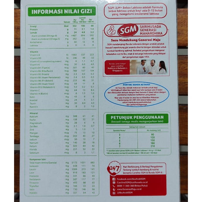 Susu Sgm Bebas Laktosa 200 Gram / SGM LLM+ / Susu Formula Bebas Laktosa