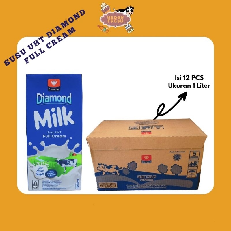Susu Diamond UHT Full Cream 1 Liter - Susu Cair Plain / Bahan Kue & Minuman - Karton/Eceran
