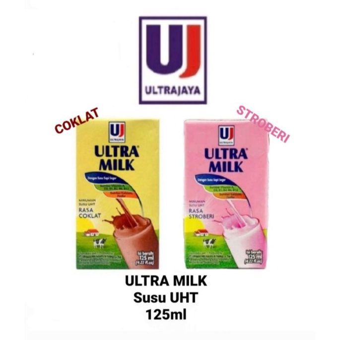 Susu Ultra (Pcs) 125ml / ULTRA Milk UHT 125 ml / Ultra Coklat Stroberi Full Creanm