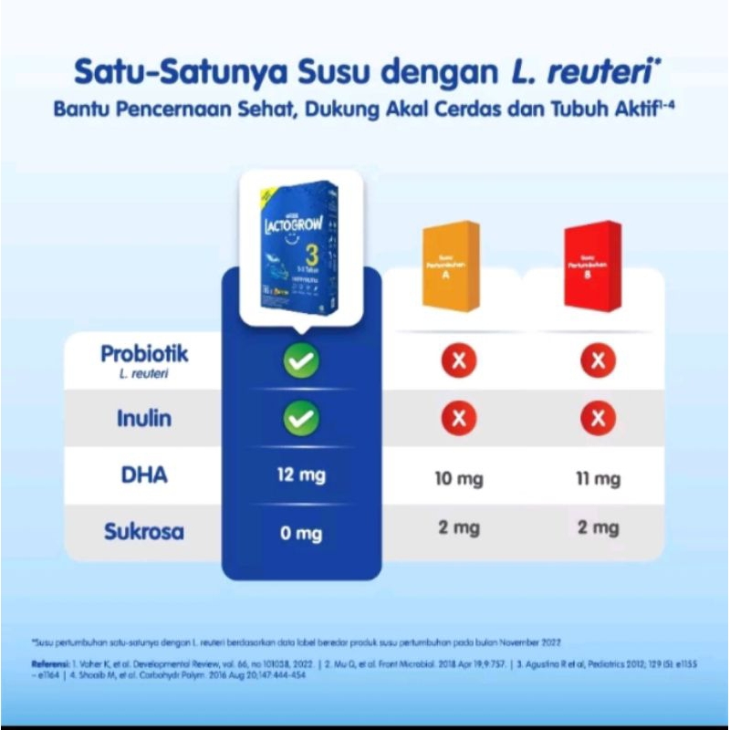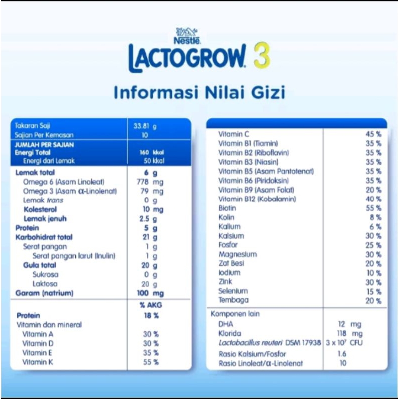 Susu formula Lactogen 3, rasa vanila dan madu untuk anak usia 1-3 tahun