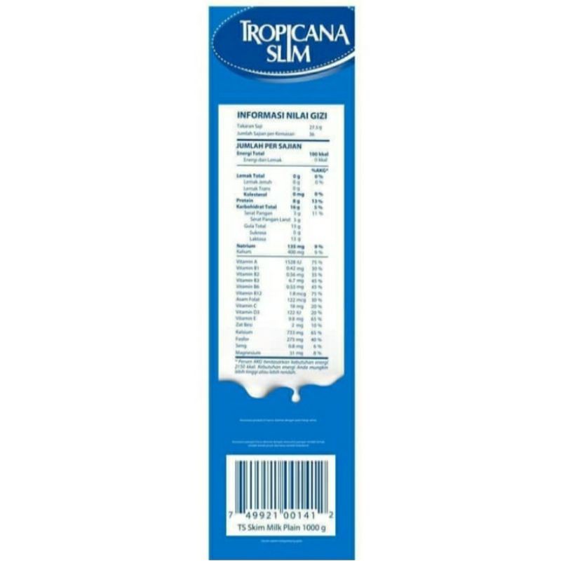 Susu tropicana slim non fat 1000 gr susu skim tanpa lemak 1 kg