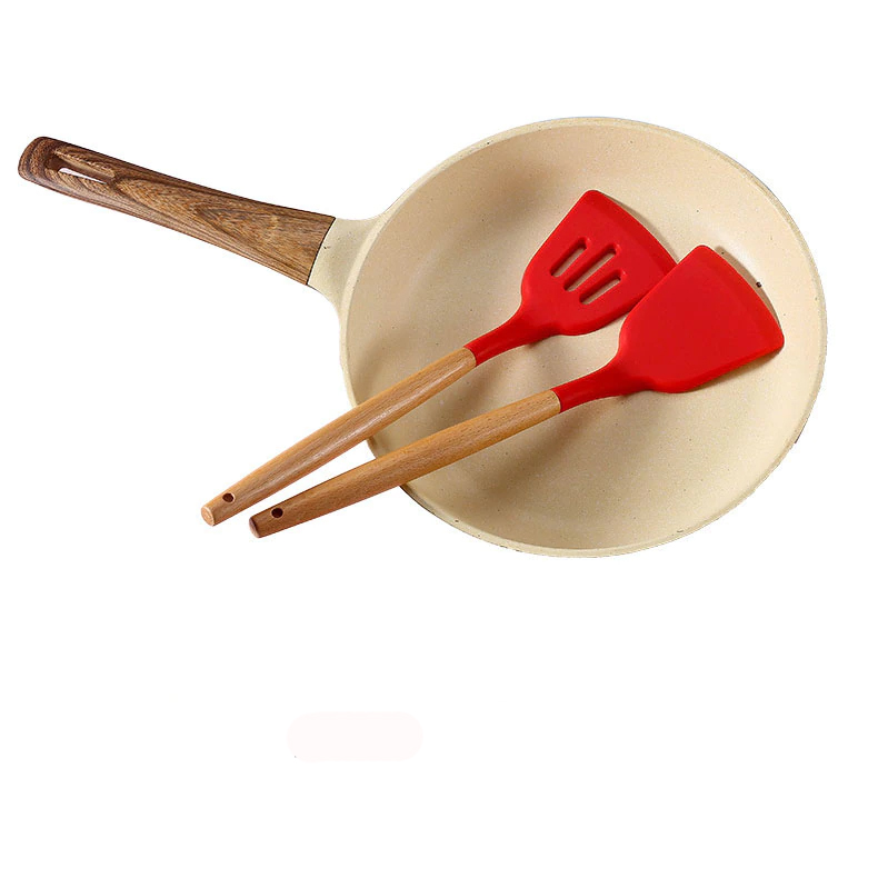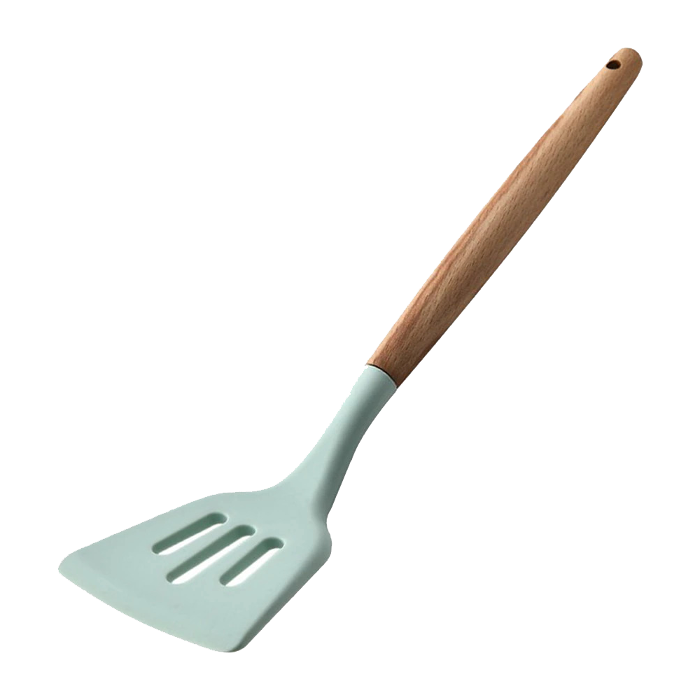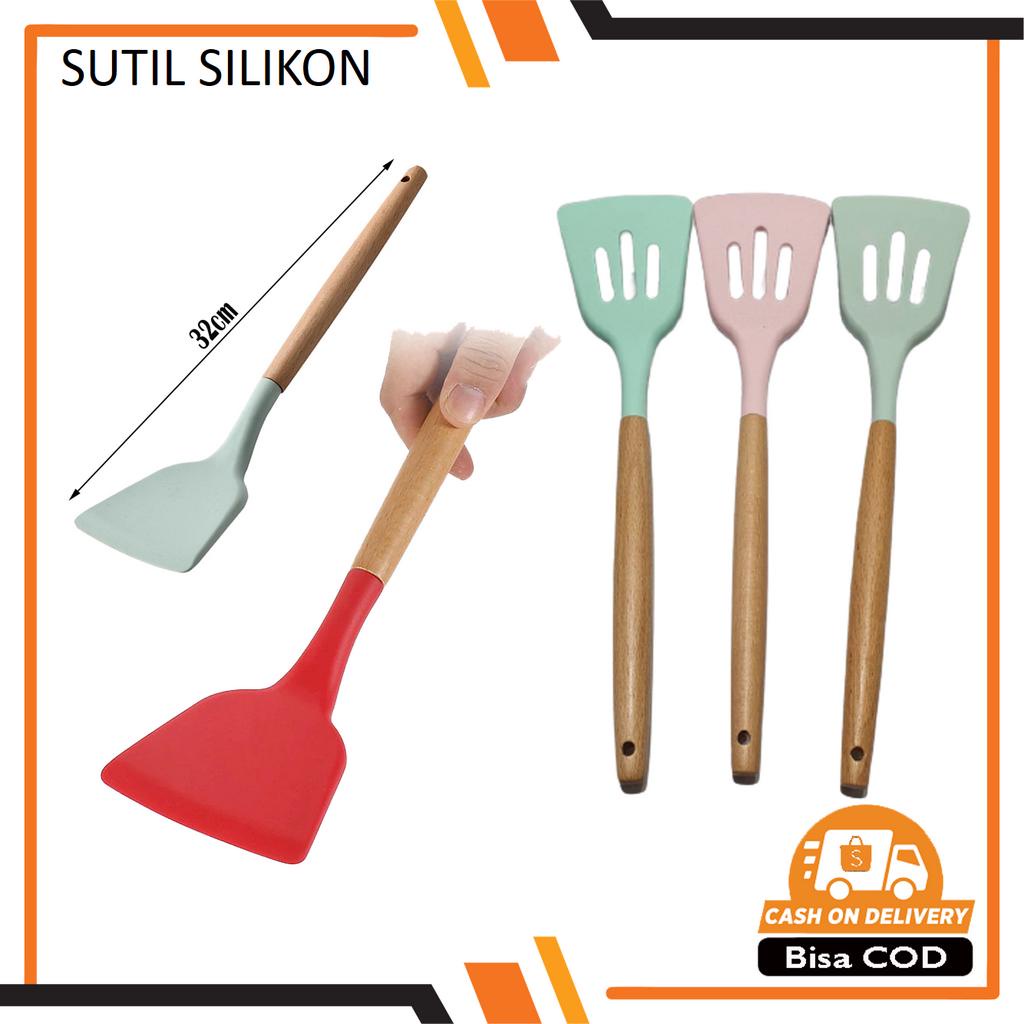 Sutil Silikon Tahan Panas Gagang Kayu Alat Masak Codet Spatula Silicone