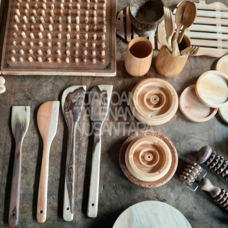 Sutil Solet Spatula Sendok Sayur Centong Kayu 1 Set Isi 5 Kayu Jati Asli - Peralatan Dapur Kayu