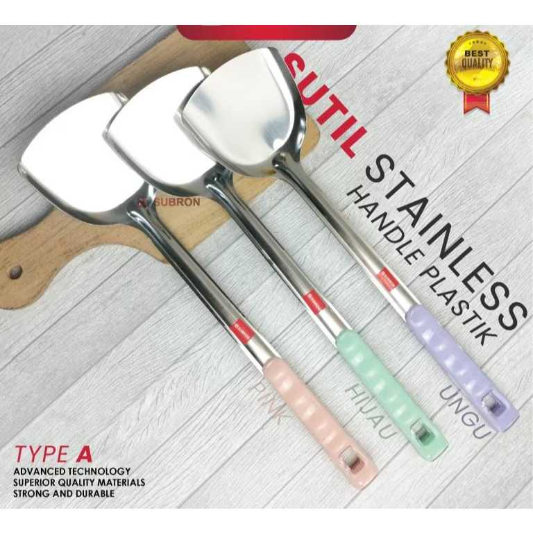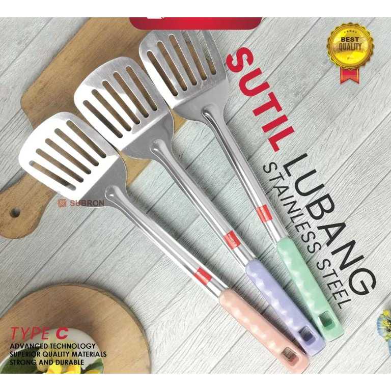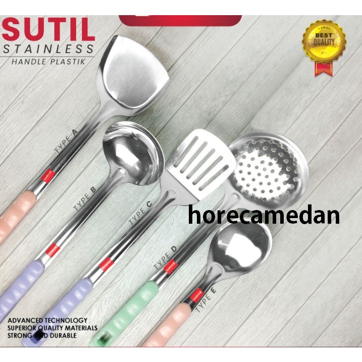 Sutil Spatula Centong Sendok Nasi Lubang Stainless Pegangan Plastik Warna Pastel kitchen set