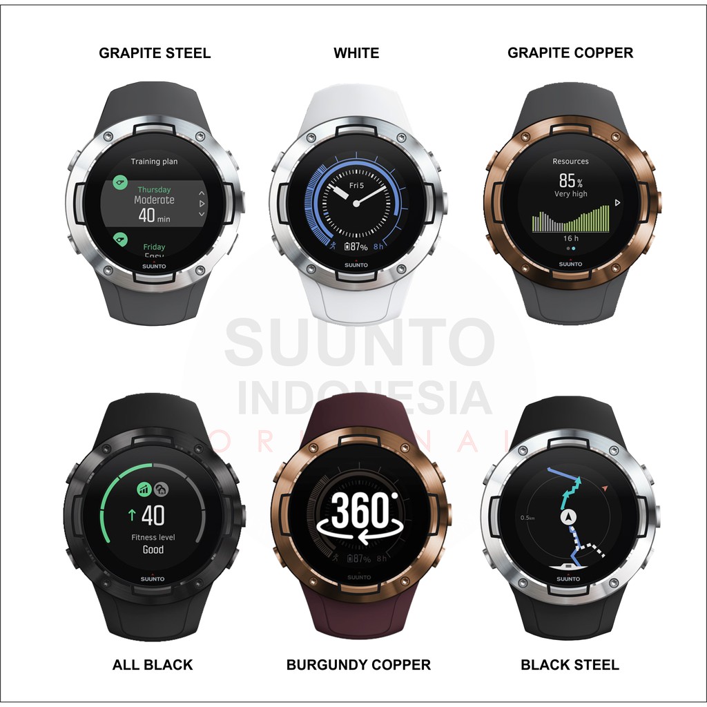 Suunto 5 Garansi Resmi ( All Black, White, Graphite Steel / Copper, Black Steel, Burgundy Copper)