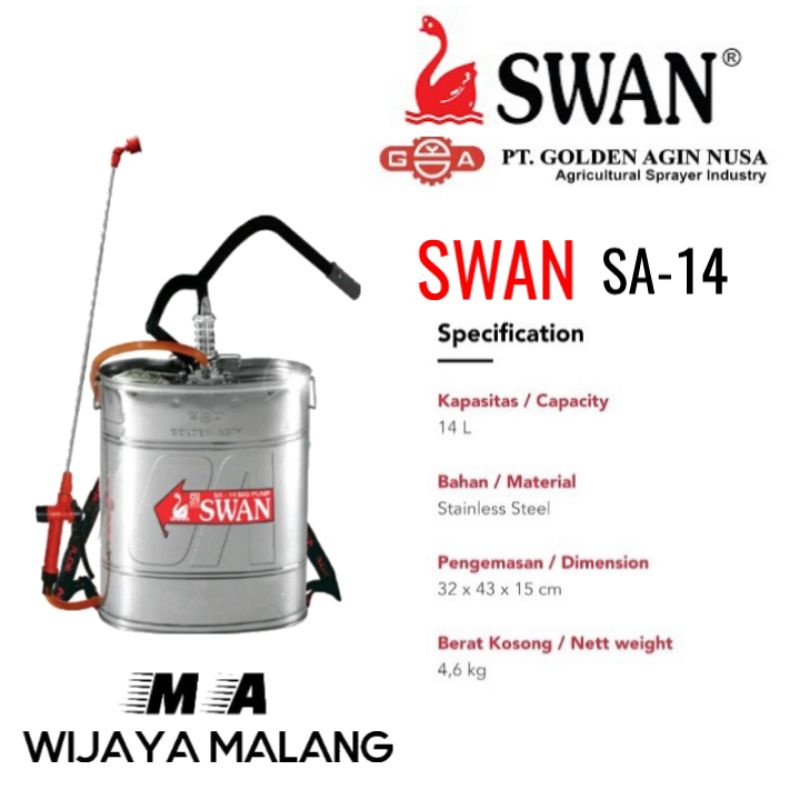 Swan Sa 14 Manual Pompa Stenlis / Tanki Semprotan Hama / Alat Semprot Pertanian
