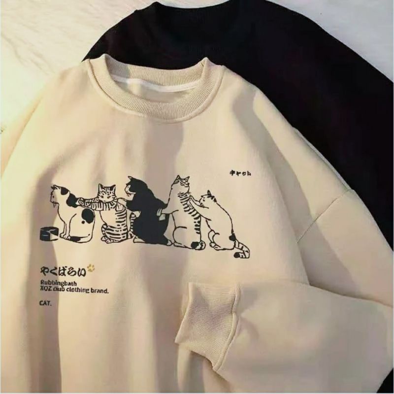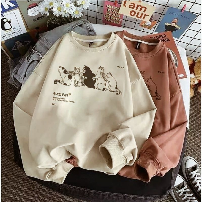 Sweater Hoodie Anak Perempuan CAT GANK 5-15Thn || Sweater Crewneck Anak Perempuan Tanggung CAT GANK OVERSIZE