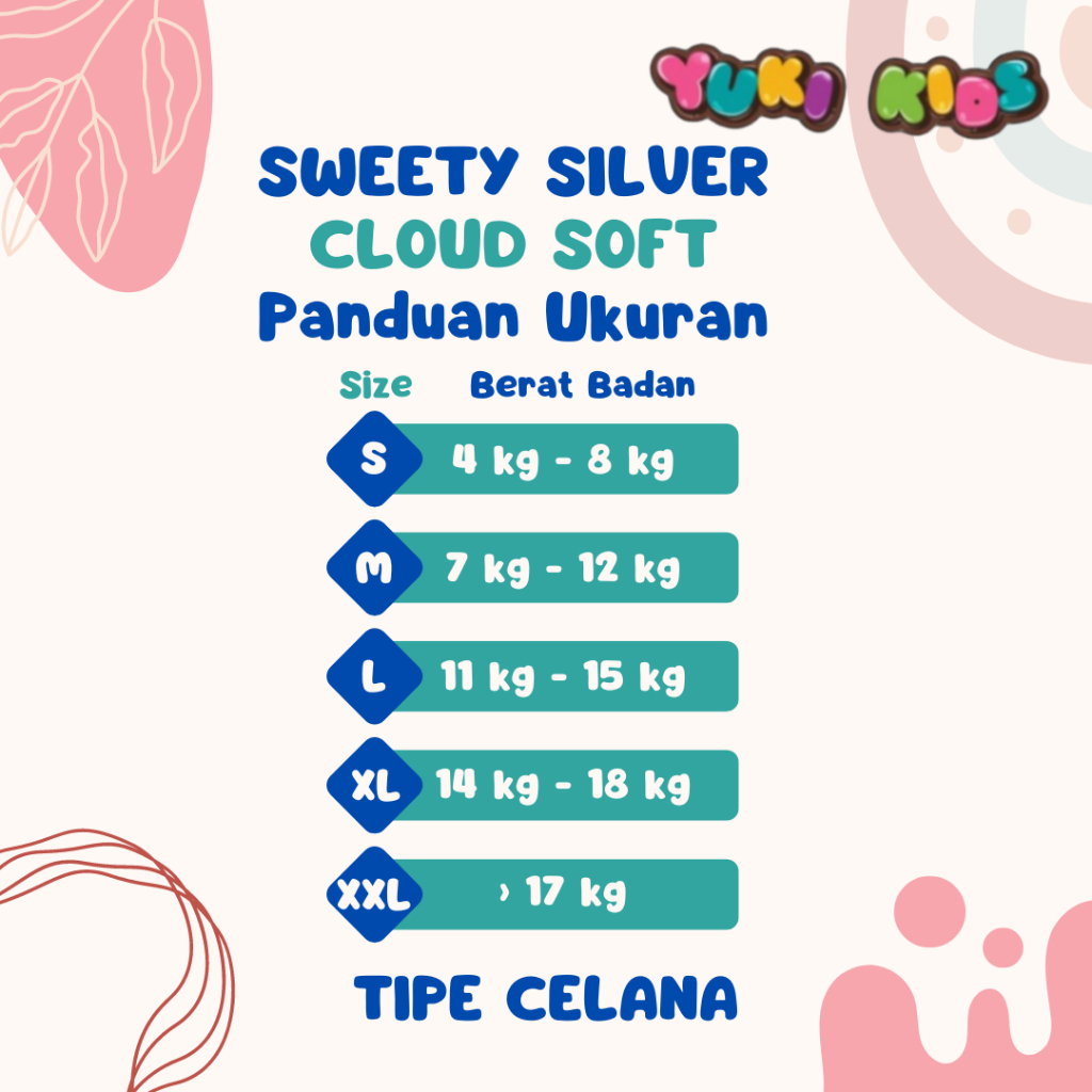 Sweety Silver Cloud Soft Pants Kemasan Super Jumbo S66/M60/L54/XL42/XXL32 (Tipe Celana)