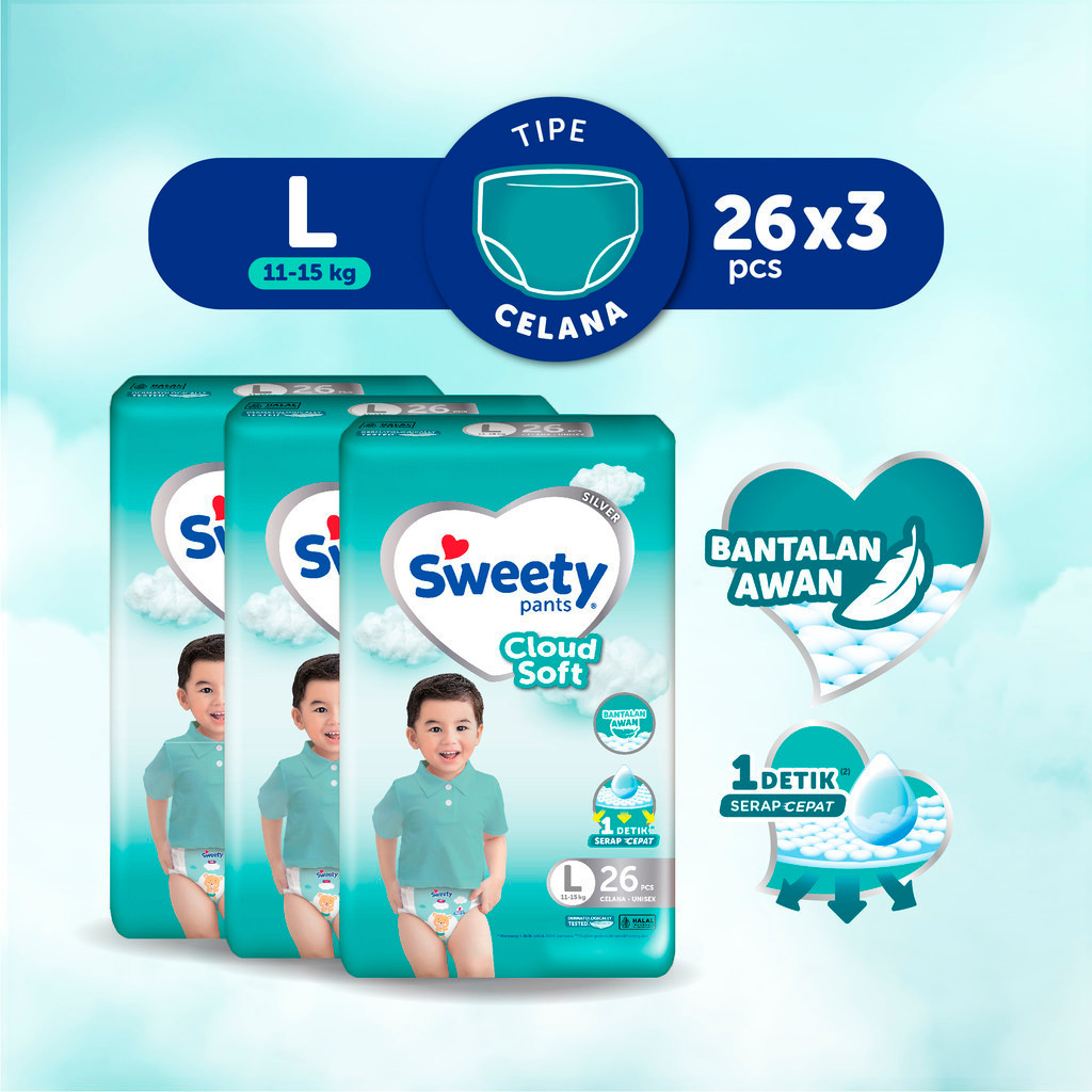 Sweety Silver Pants Cloud Soft L 3 x 28s Popok Celana Baby Diapers - Special Upcount