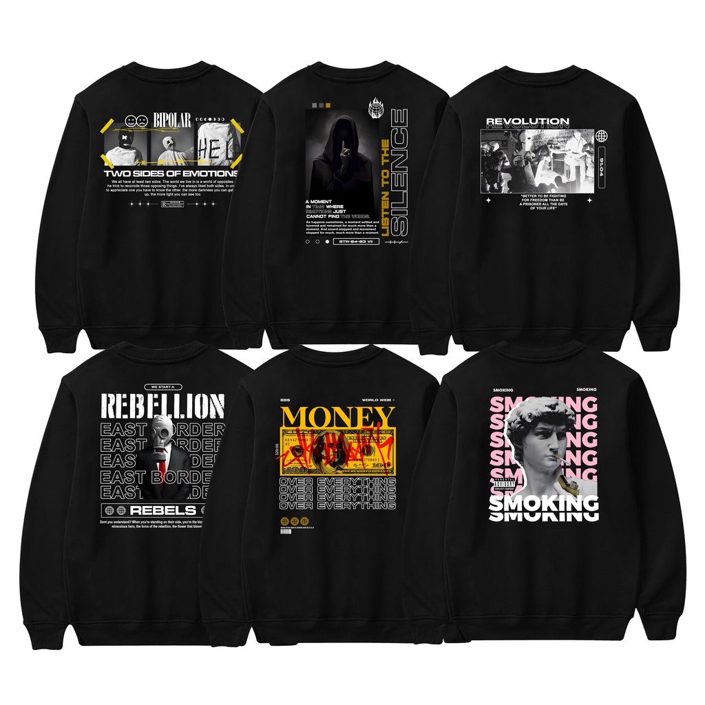 Sweter Switer Sweeter Crewneck Sweater Pria suiter Wanita Distro Bahan Fleece Warna Hitam tebal