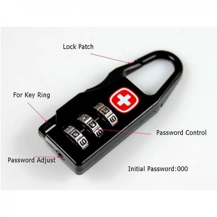 Swiss Gear Code Lock Gembok Koper Ransel Kombinasi 3 digit Angka Import - Black
