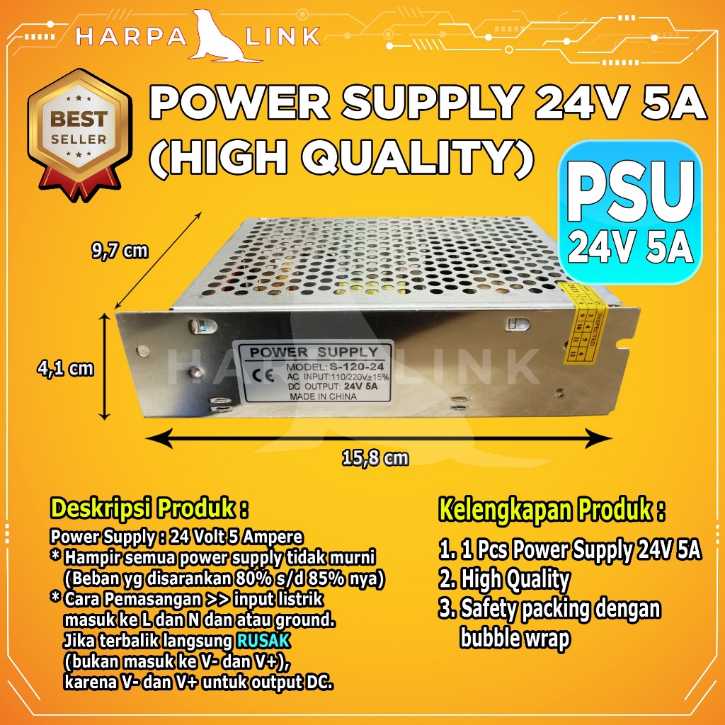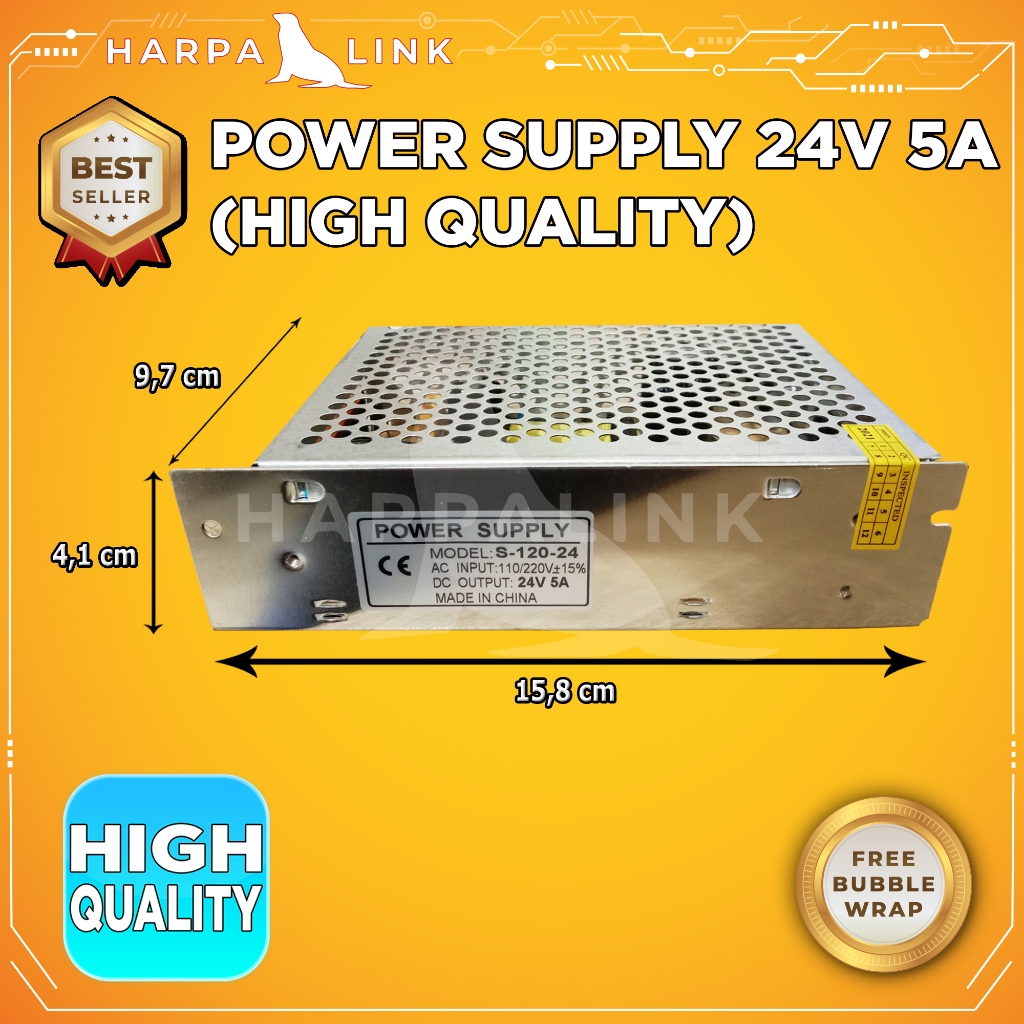 Switching Power Supply PSU 24V 5A High Quality / Power Supply 24V 5A / 24 Volt 5 Ampere Jaring Adaptor SMPS Trafo Besi Rongga Bagus