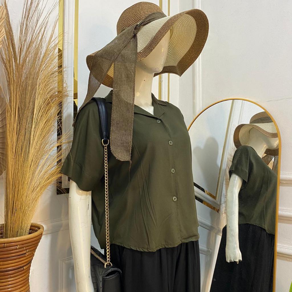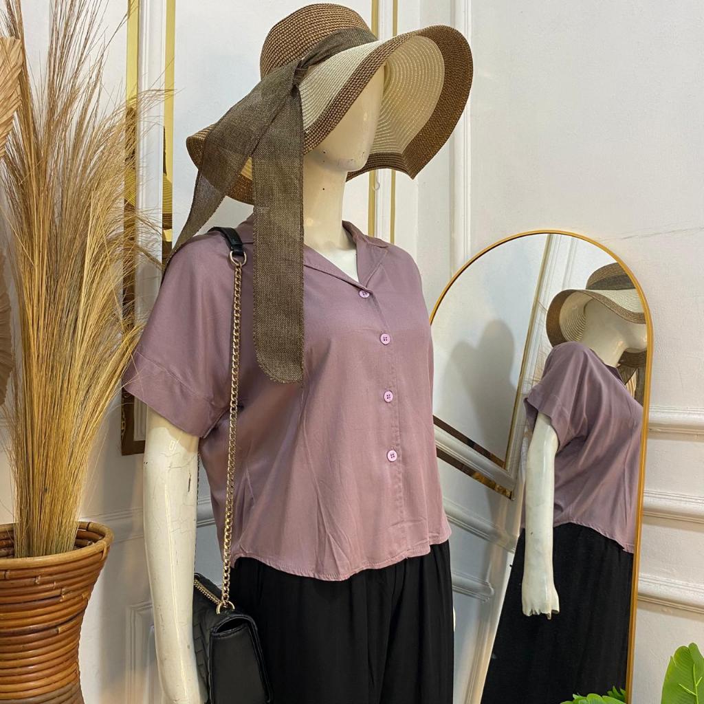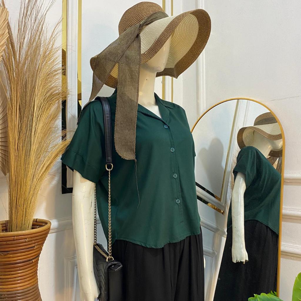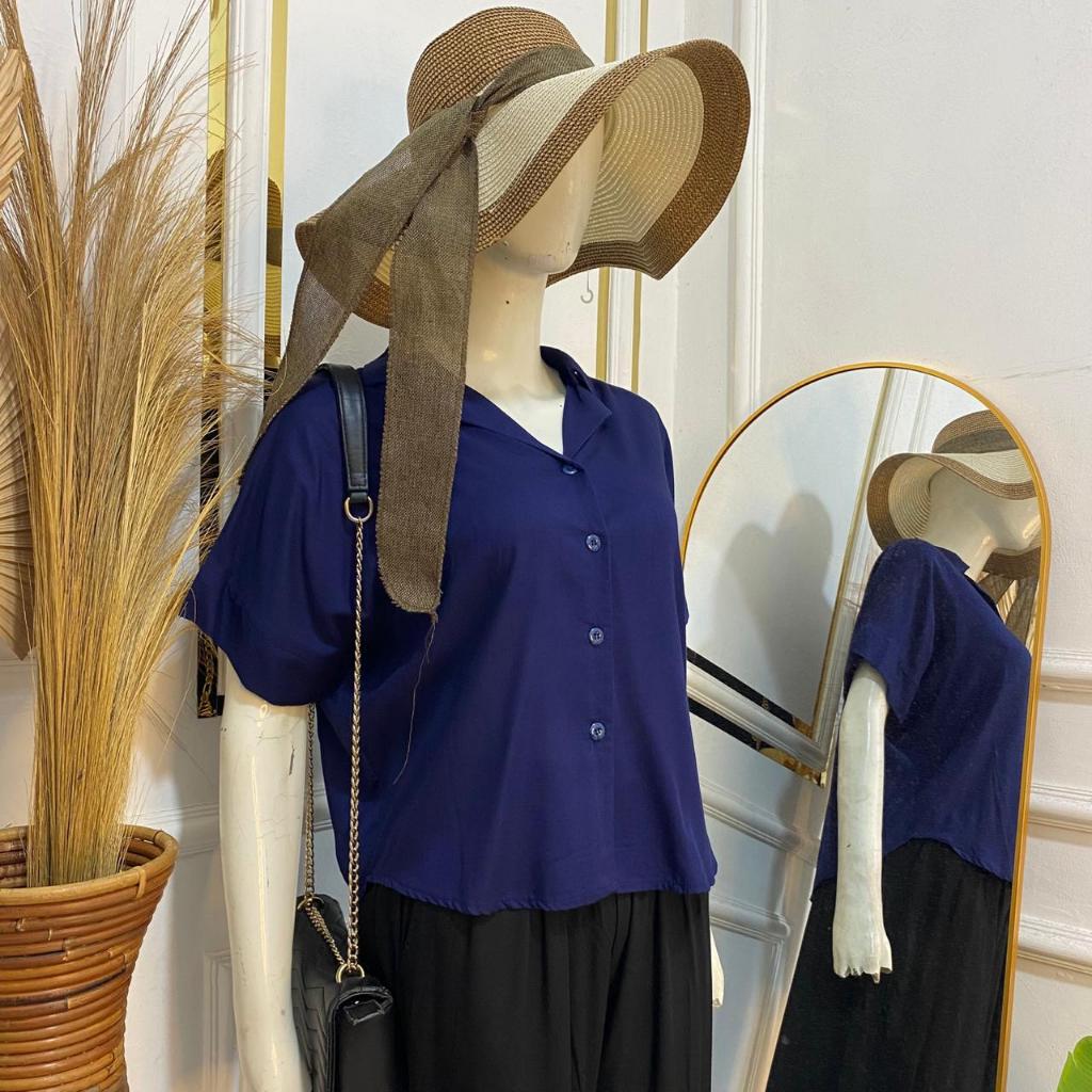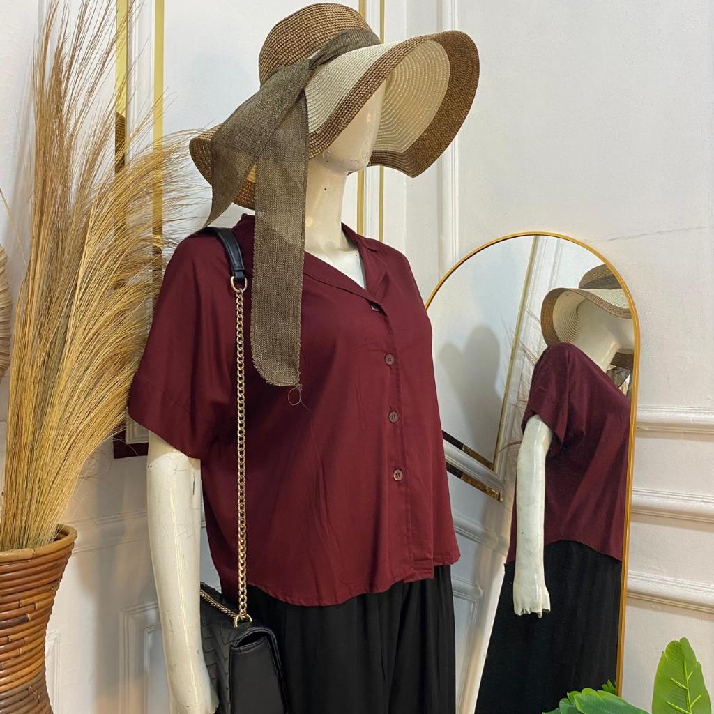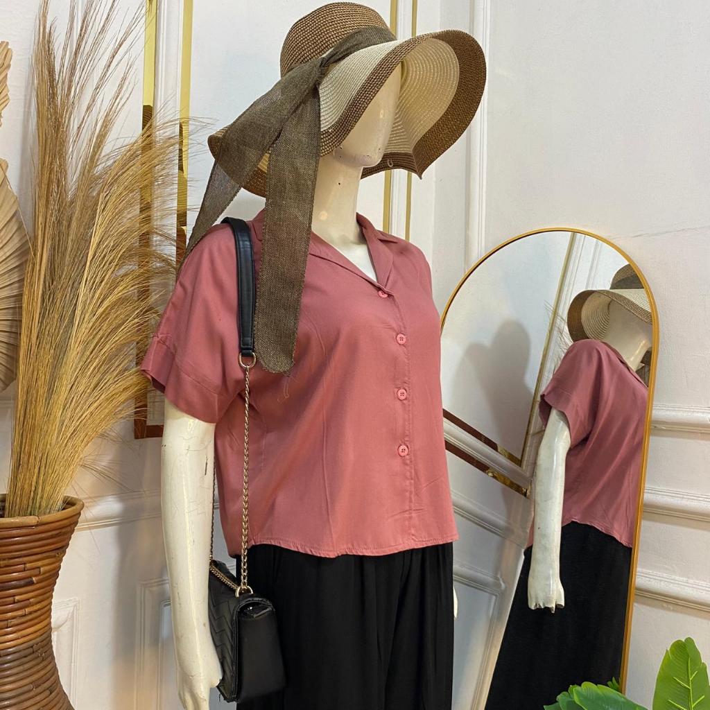 Syafiqa - Delvina Shirt / Kemeja Lengan Pendek Wanita / Atasan Basic polos Wanita / Blus Katun Rayon