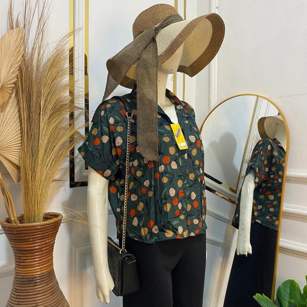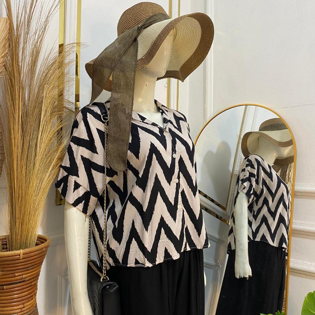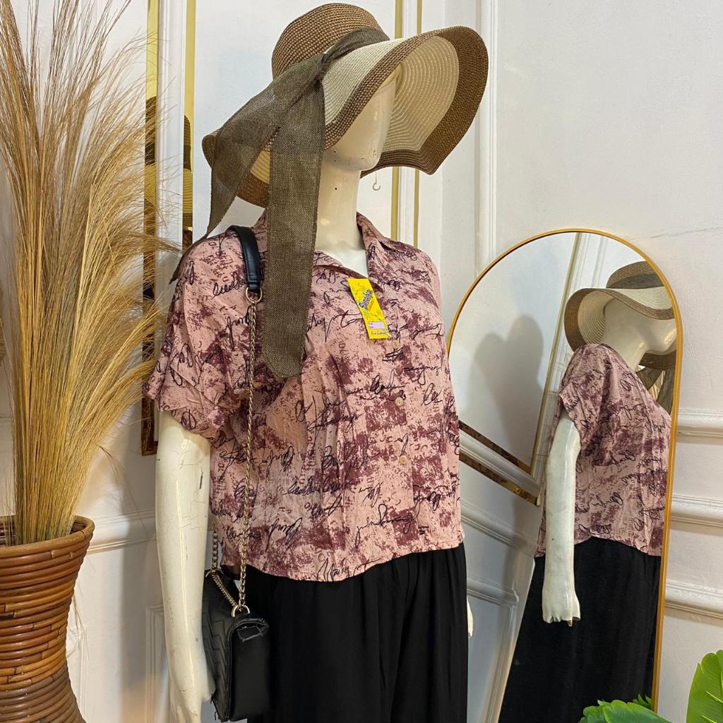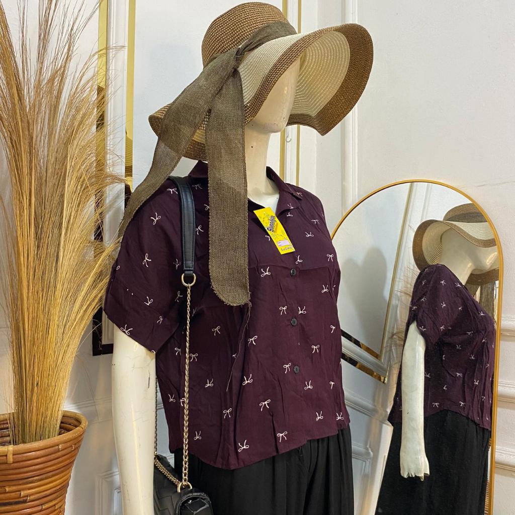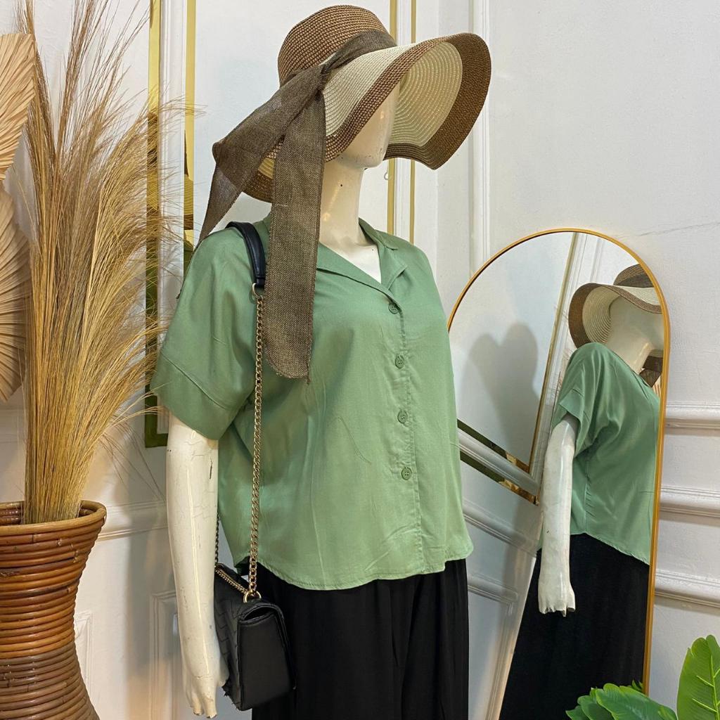 Syafiqa - Delvina Shirt / Kemeja Lengan Pendek Wanita / Atasan Basic polos Wanita / Blus Katun Rayon
