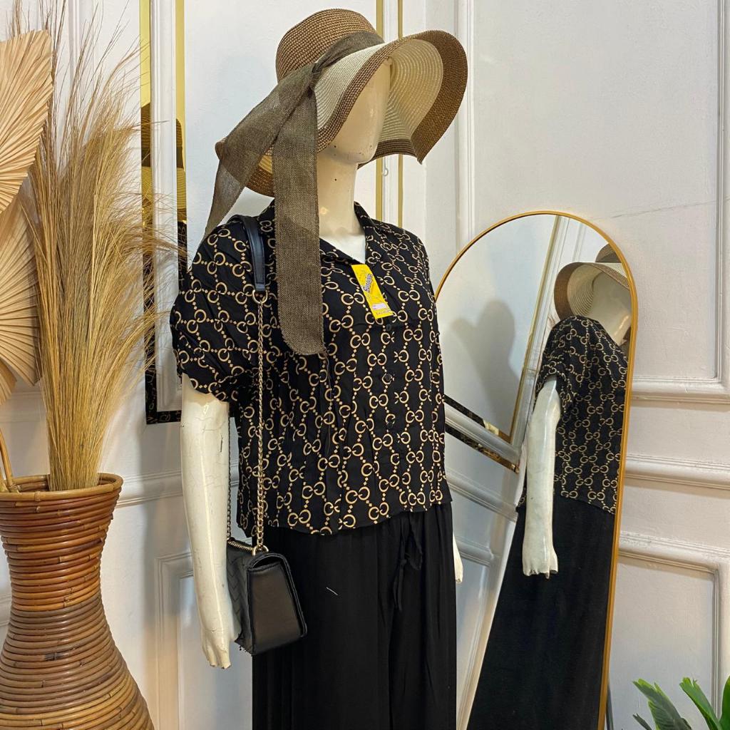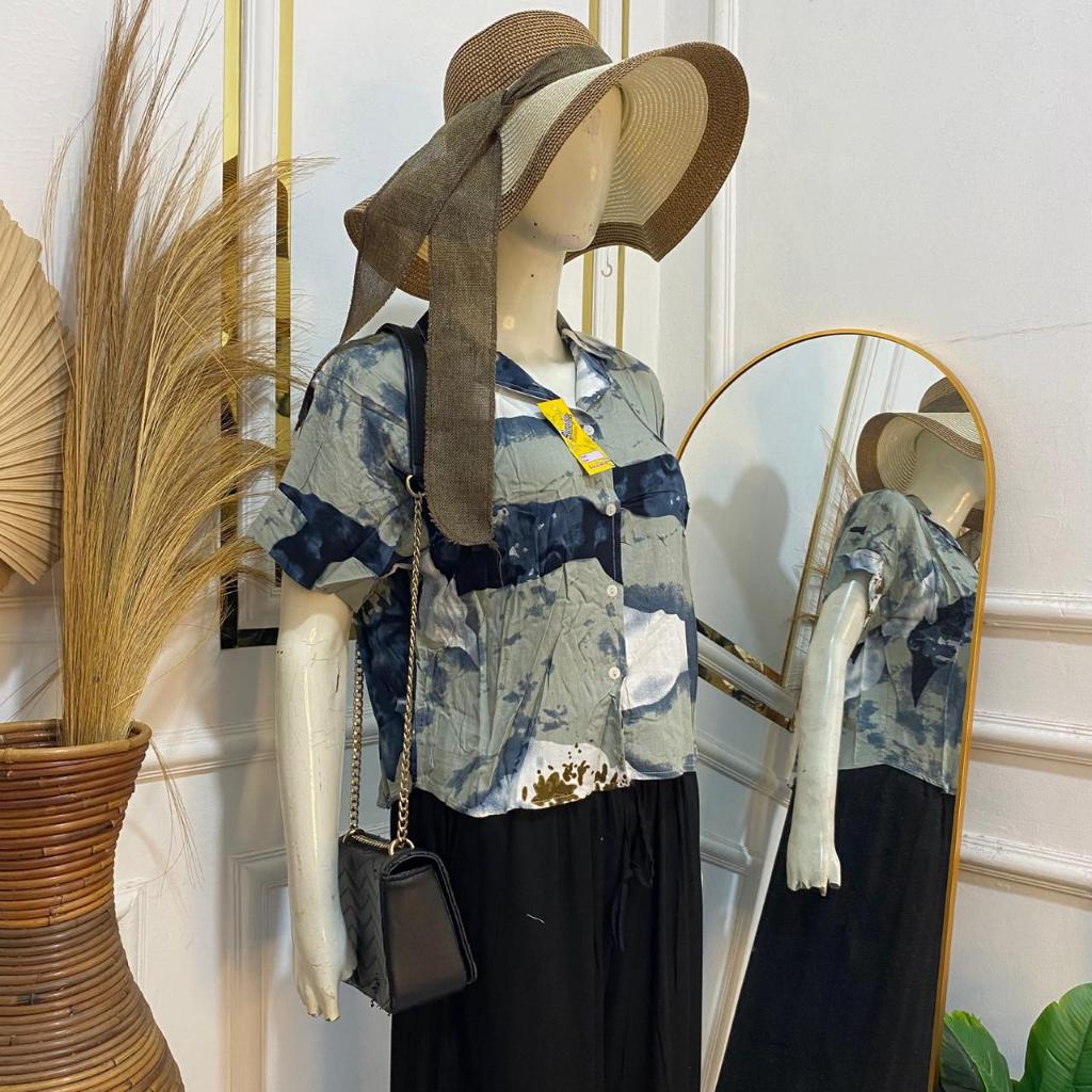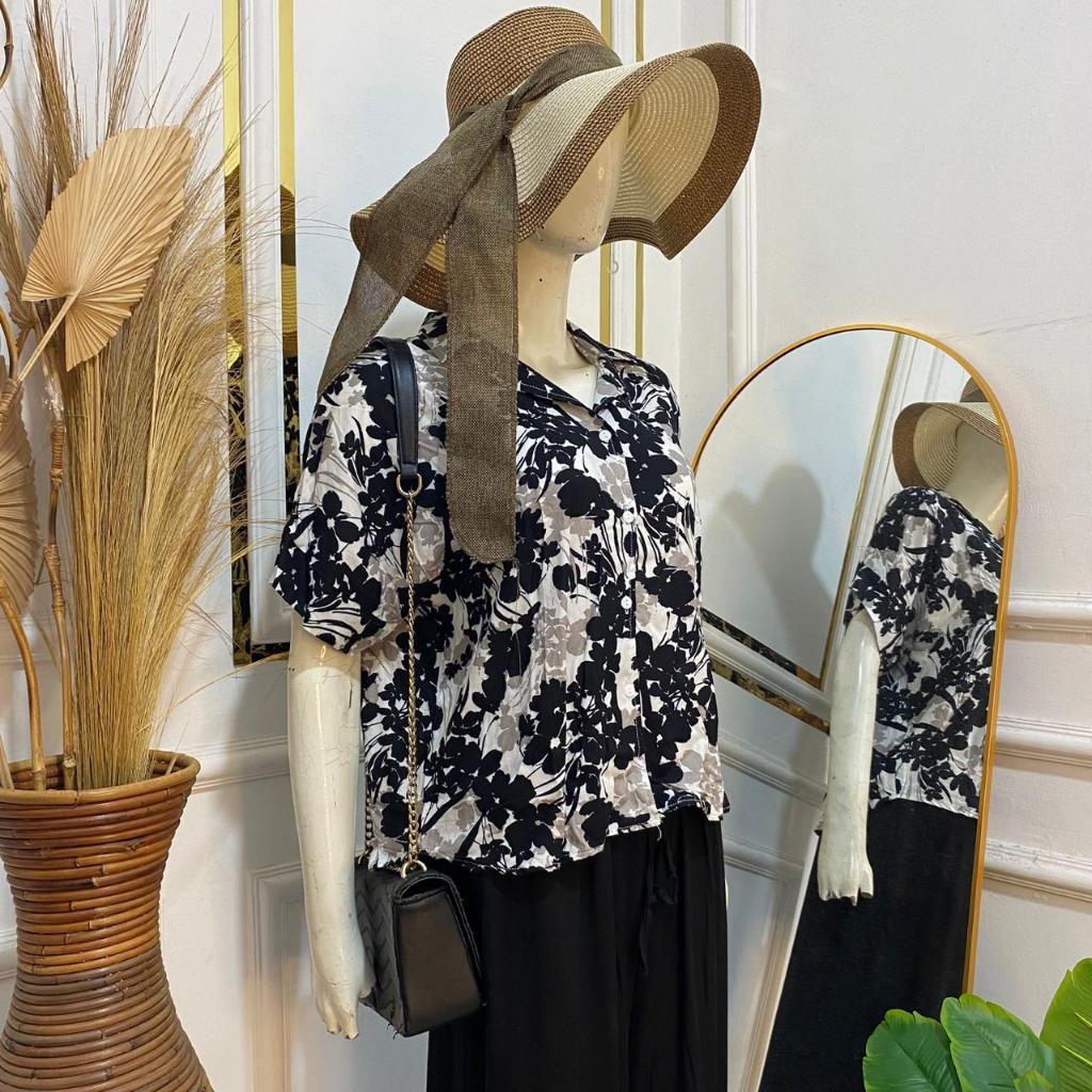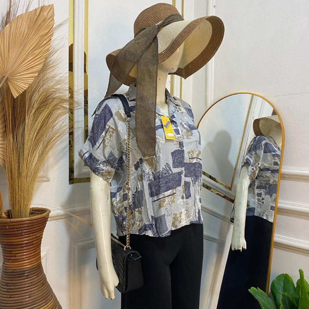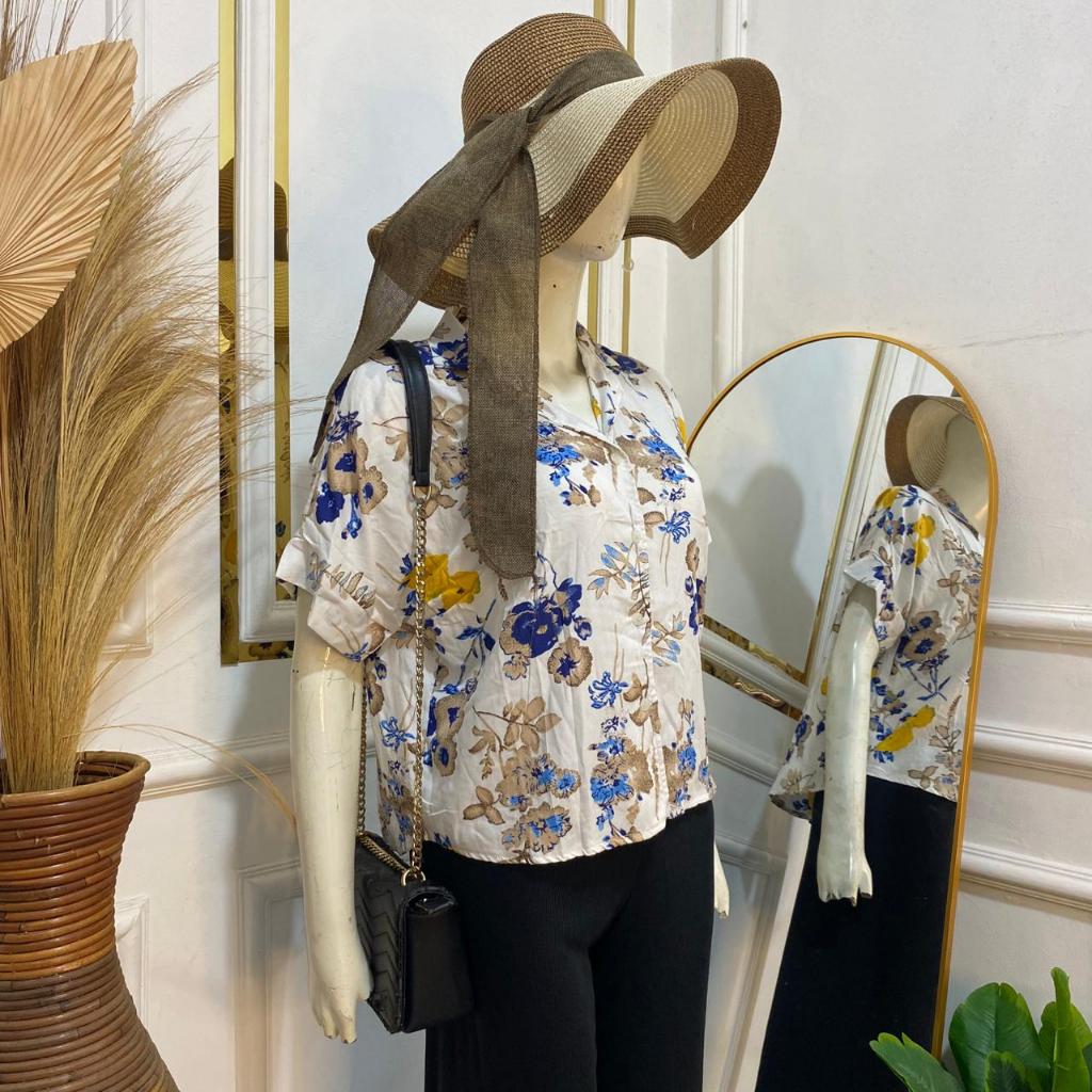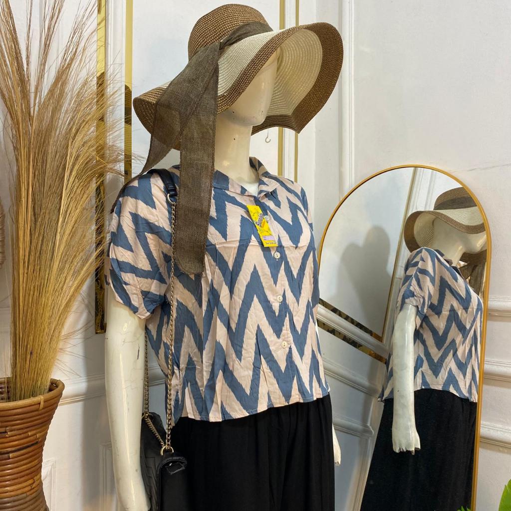 Syafiqa - Delvina Shirt / Kemeja Lengan Pendek Wanita / Atasan Basic polos Wanita / Blus Katun Rayon