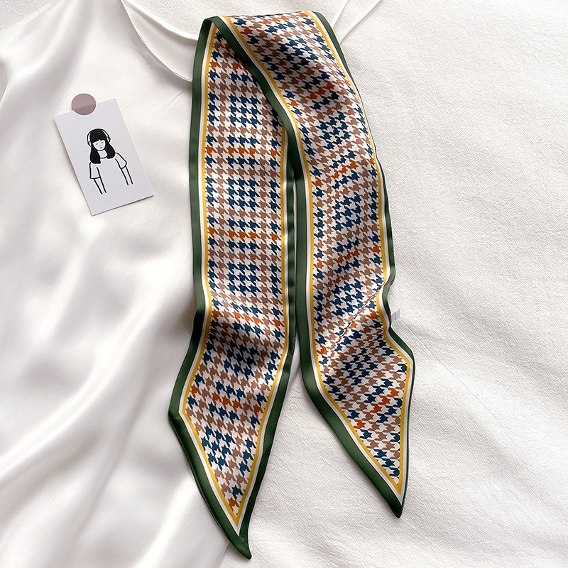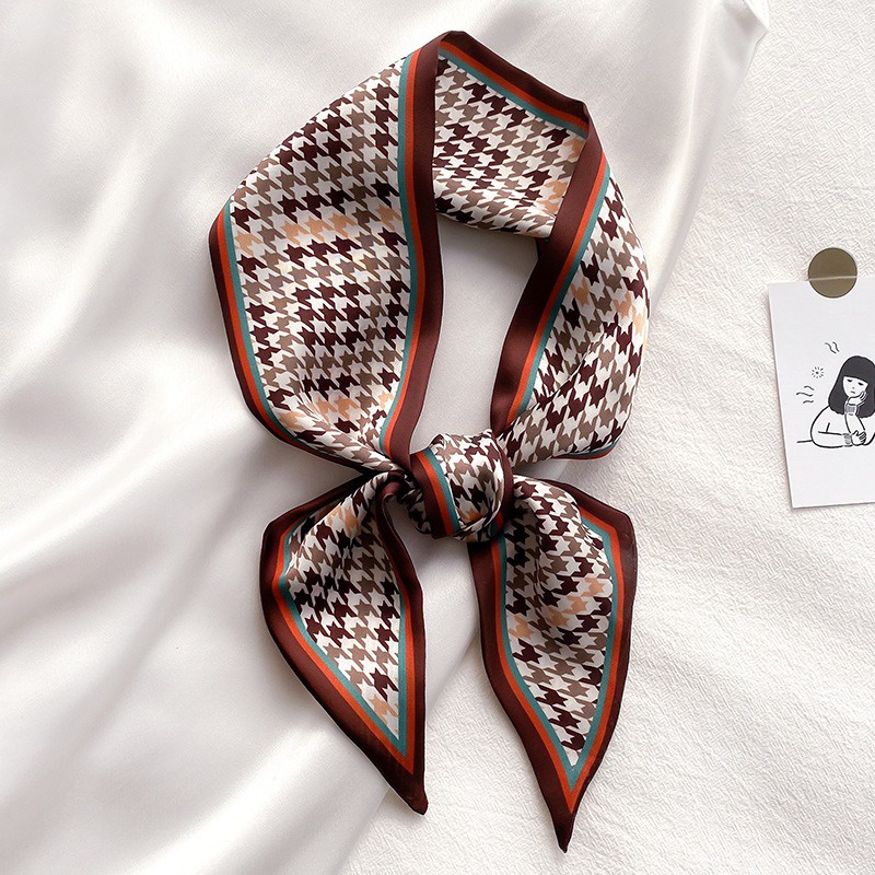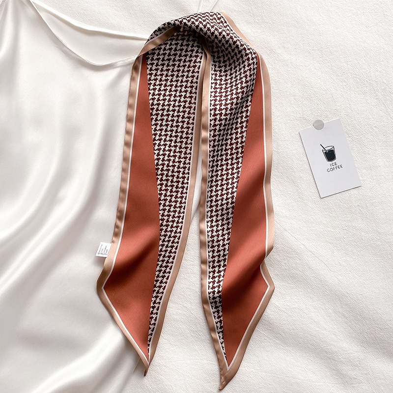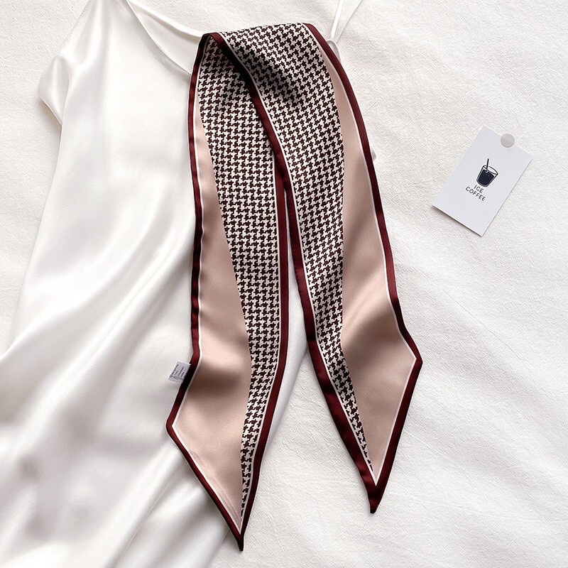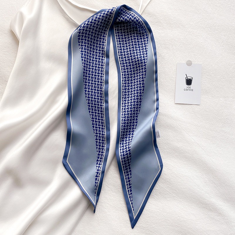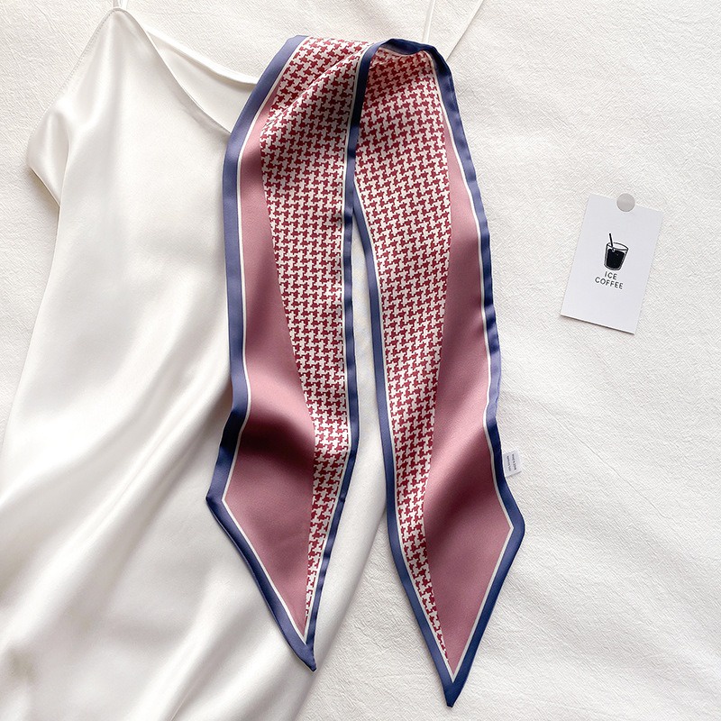 Syal Sutra Scarf Pita Dasi Motif Bunga dan Houndstooth Selendang Ikat Leher Persegi Panjang Mewah LSO242