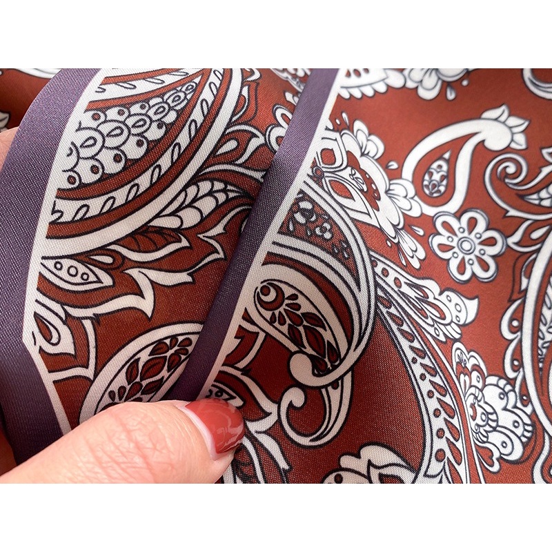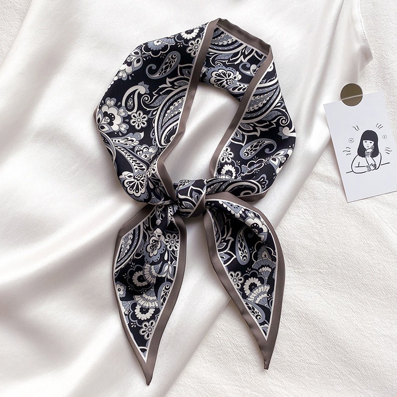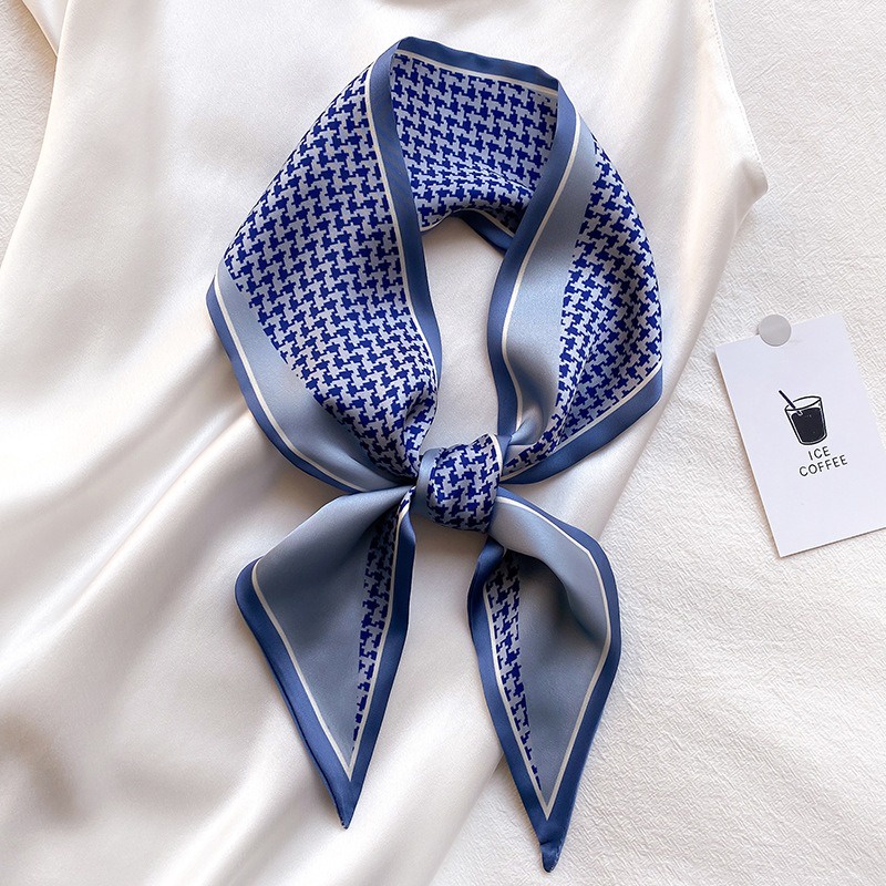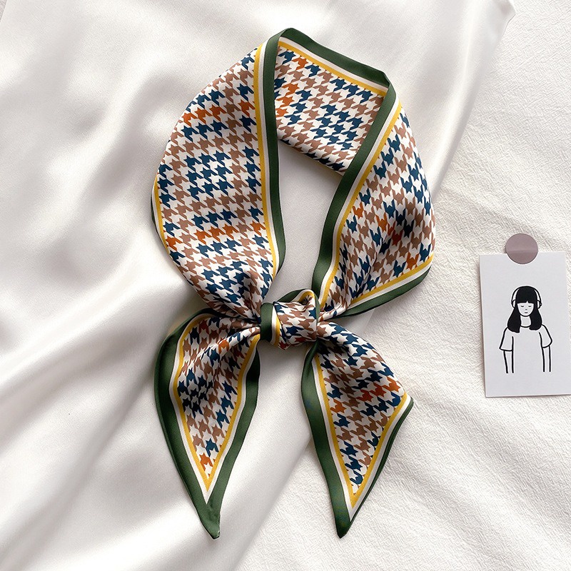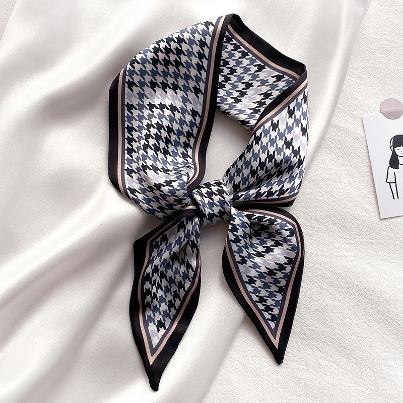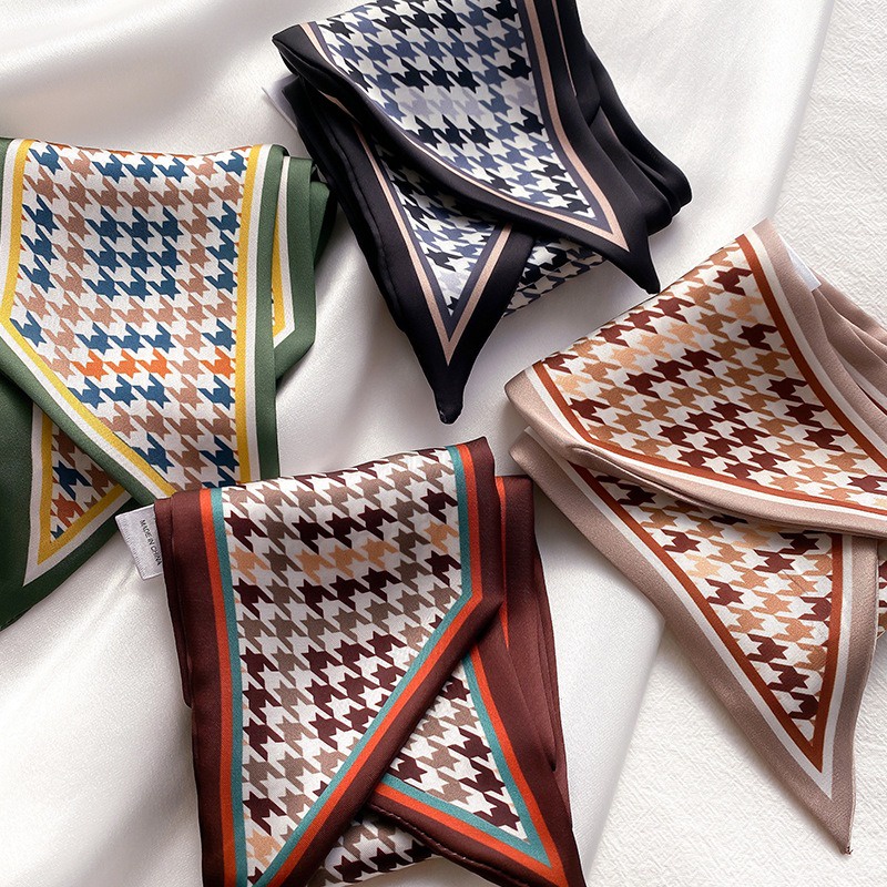 Syal Sutra Scarf Pita Dasi Motif Bunga dan Houndstooth Selendang Ikat Leher Persegi Panjang Mewah LSO242