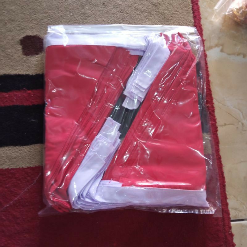 Syal merah putih 20 biji paskibra segitiga perekat