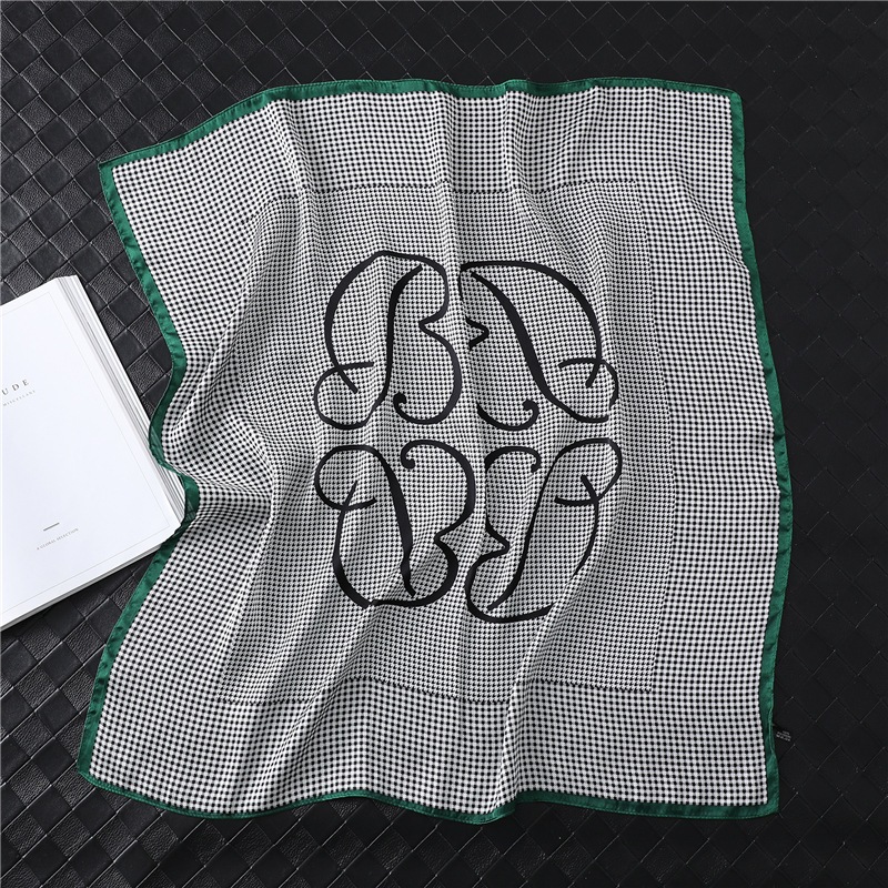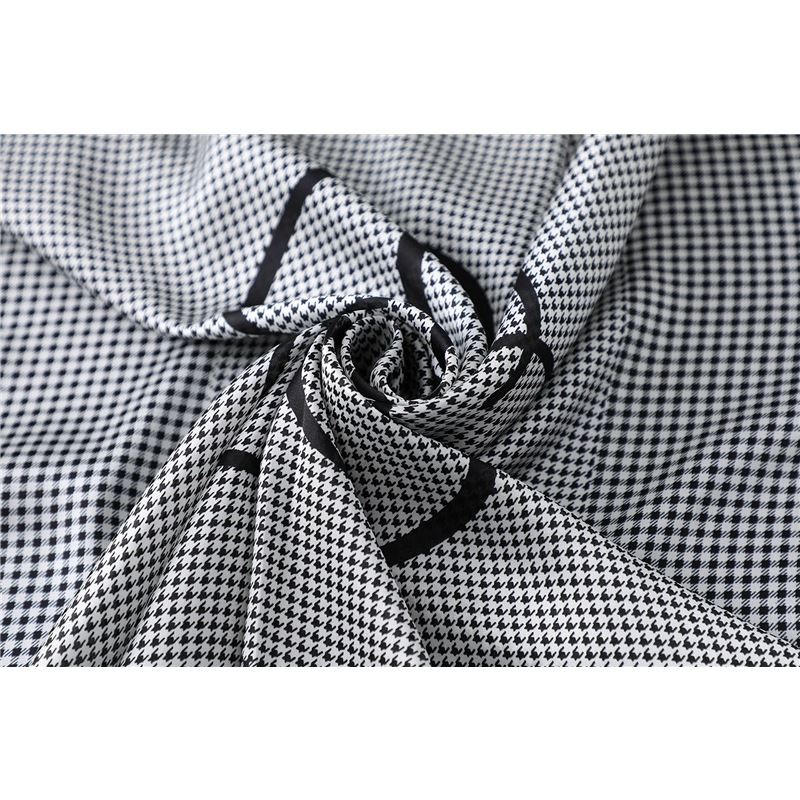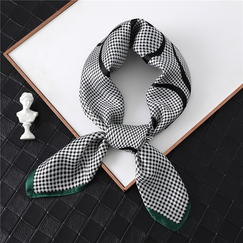 Syal satin silk "70x70"cm scarf persegi kotak-kotak hitam dan putih serbaguna syal profesional