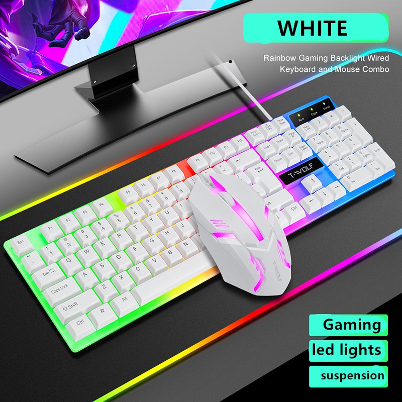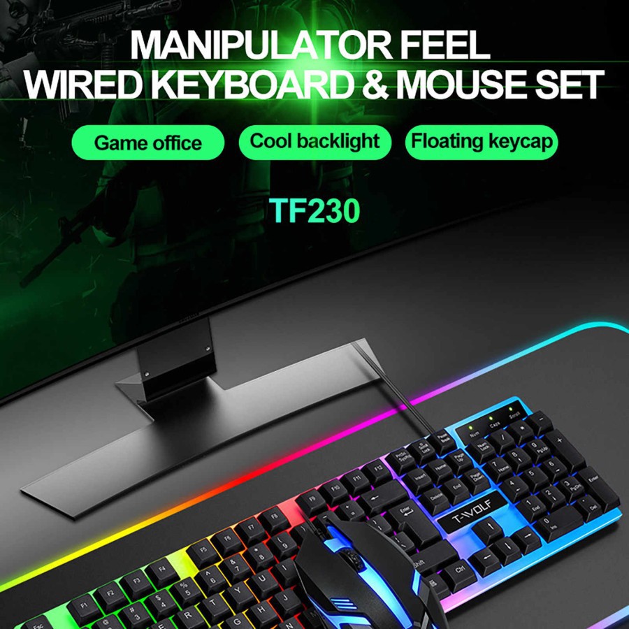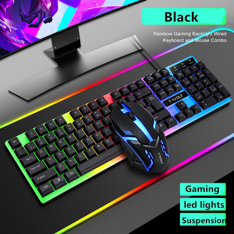 T-WOLF TF230 Rainbow LED Gaming Keyboard And Mouse Combo Bundle