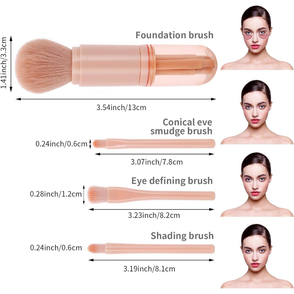 T&Y Kuas Make Up Set Make Up 4IN1 Brush Portable Kosmetik Brush Travel Kuas Make Up 4in1 Kuas Kapsul Make Up Set 4pc