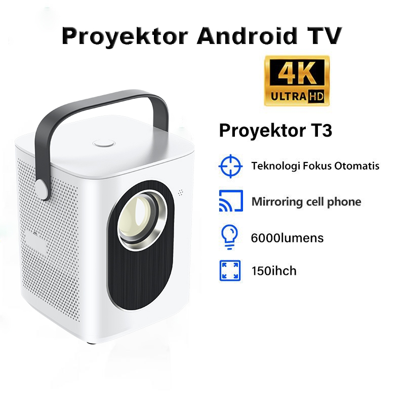 T3 Proyektor 10000 Lumen 4K HD Mirror Projector Android Portable Smart Proyektor Connect WIFI&Bluetooth Projector teater rumah pintar