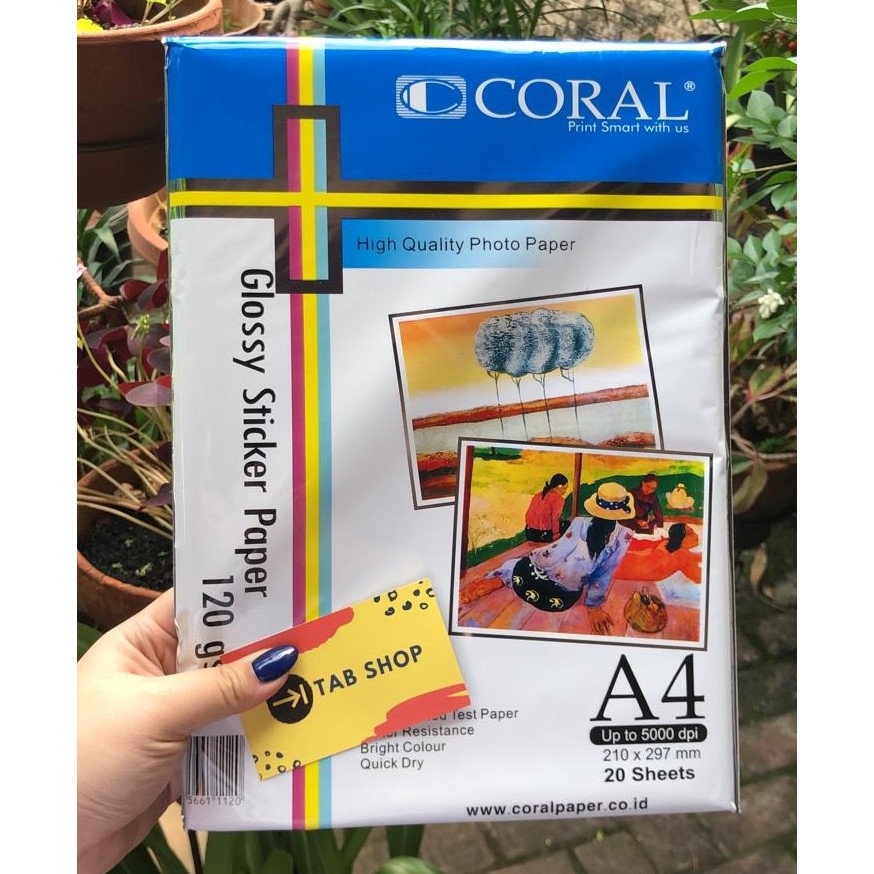 TAB SHOP - CORAL GLOSSY STICKER PAPER A4 120 GSM 20 SHEETS - KERTAS STIKER LABEL KERTAS