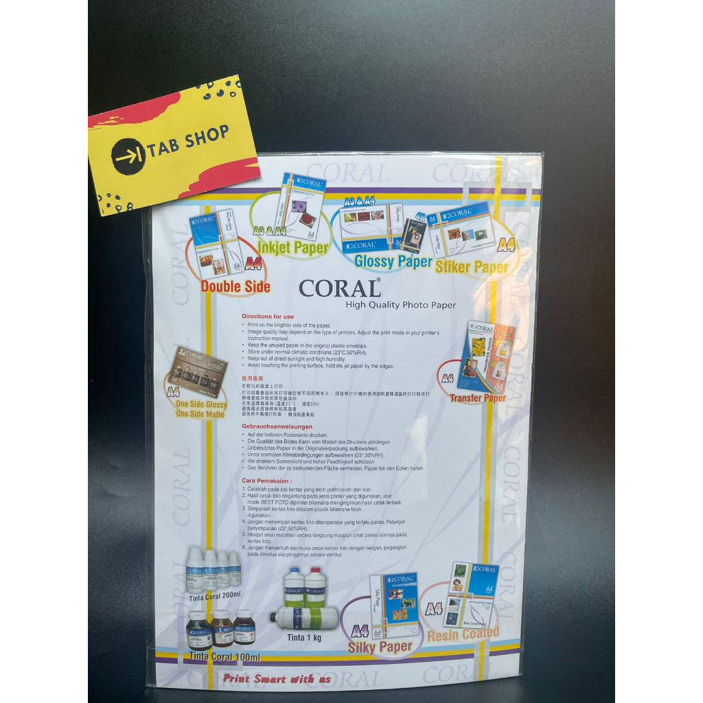 TAB SHOP - CORAL TRANSPARENT INKJET STICKER PAPER FILM 150 GSM 10 SHEETS - CORAL KERTAS STICKER TRANSPARENT INKJET FILM