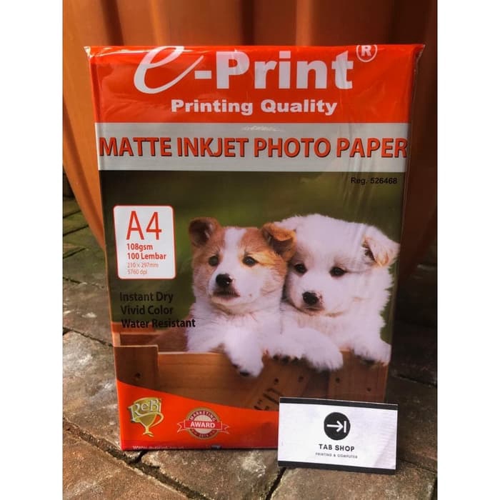 TAB SHOP - EPRINT MATTE INKJET PHOTO PAPER A4 108 GSM 100 SHEETS - E-PRINT KERTAS FOTO MATTE INJET A4 108 GSM 100 SHEETS