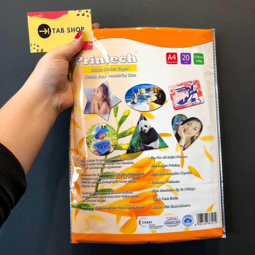 TAB SHOP - KERTAS STIKER DOFF A4 108 GSM - PRINTECH MATTE STICKER PAPER A4 108 GSM 20 SHEETS