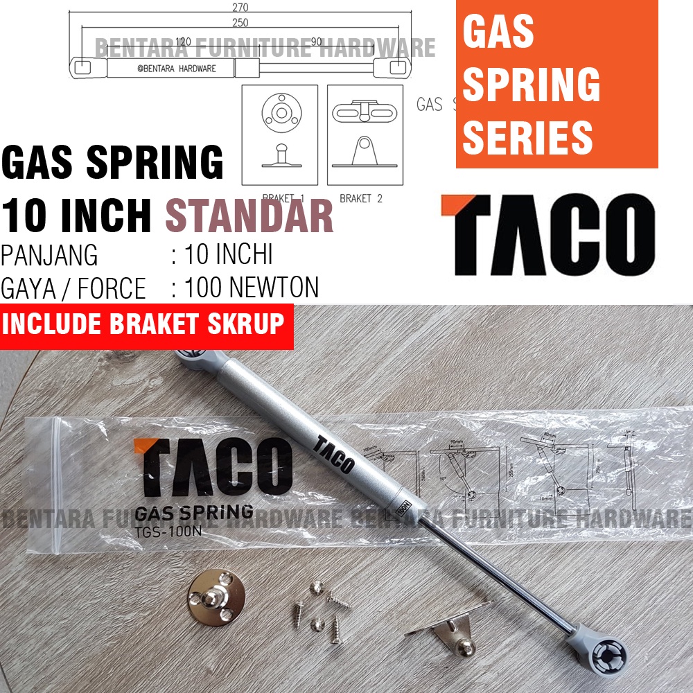 TACO GAS SPRING 10 INCHI X 100 NEWTON - HIDROLIK JOK MOTOR PINTU KABINET DAPUR