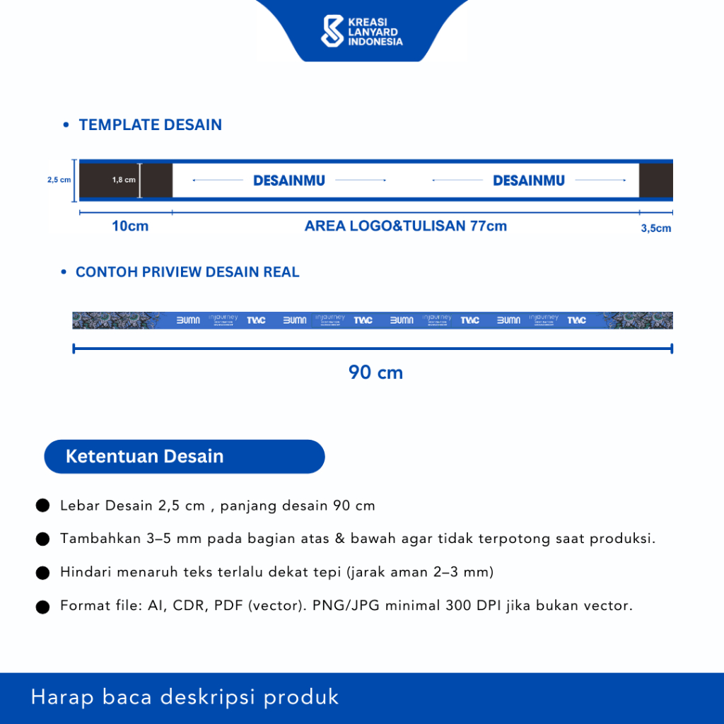 (BISA SATUAN) TALI LANYARD STOPPER 2 CM CUSTOM CETAK 2 SISI PROSES 1-2 HARI / CETAK LANYARD PRINTING