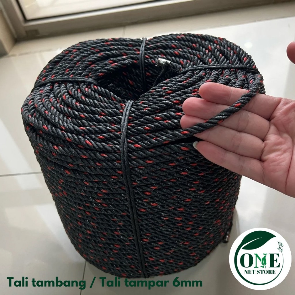 TALI TAMBANG / TALI TAMPAR PLASTIK HITAM/PUTIH BINTIK UNTUK PARANET / WARING (METERAN )