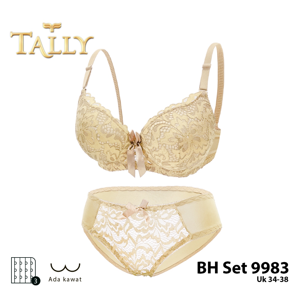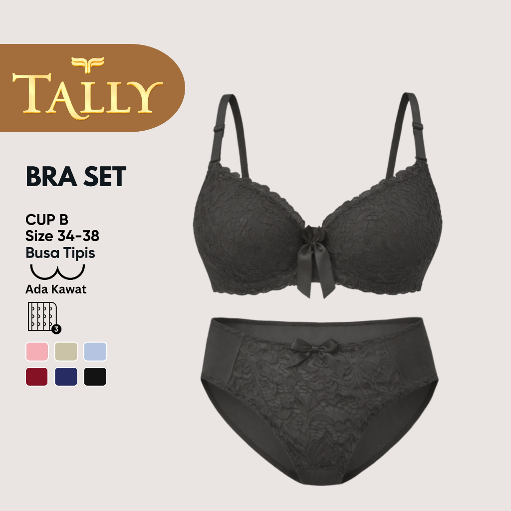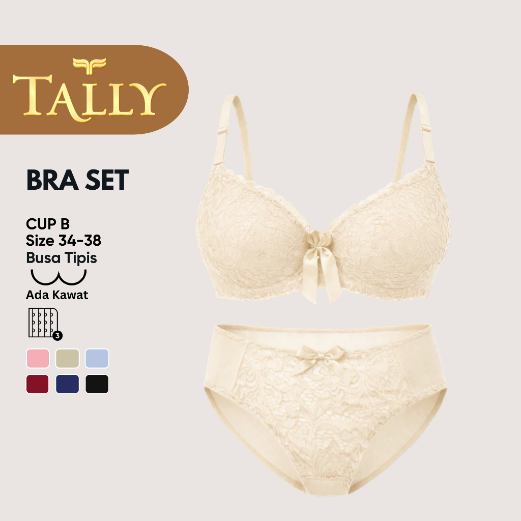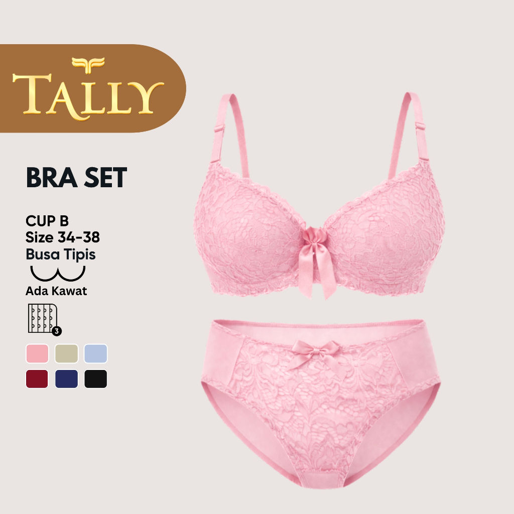 TALLY Bra Set Ada Kawat Busa Tipis Bahan Brokat CUP B Kait 3 Bh Set Renda BS 9983 Sarwendah