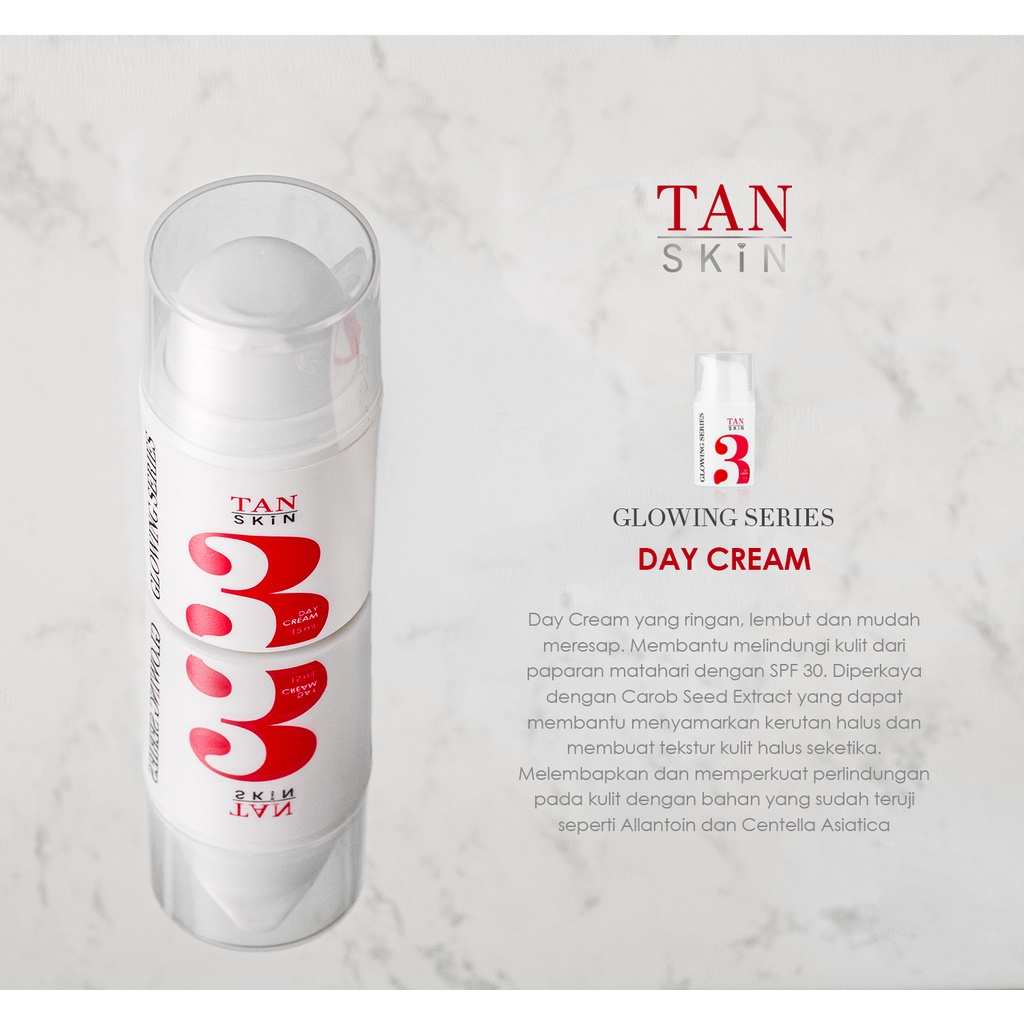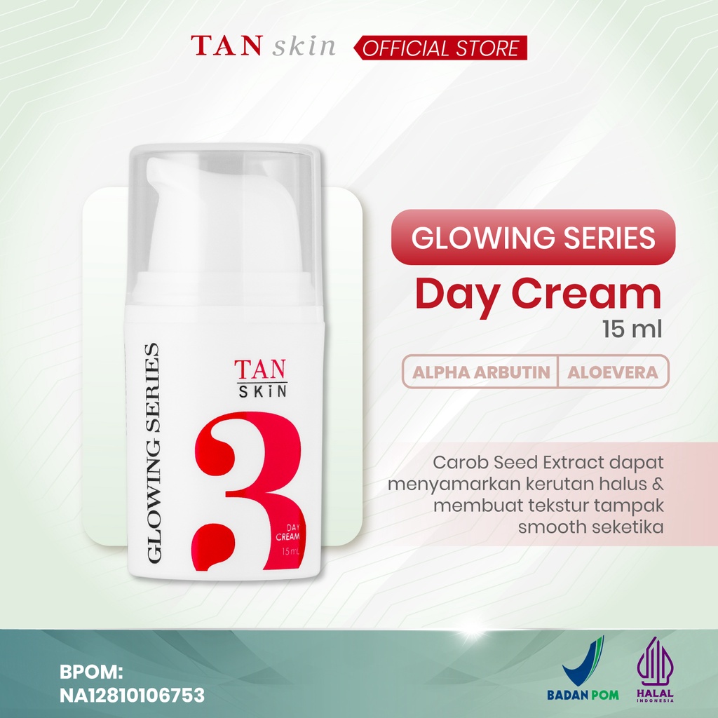 TAN SKIN Glowing Series Day Cream - Pelembab Pagi hari Untuk Memperkuat Skin Barrier Dengan Alpha Arbutin - 15ml