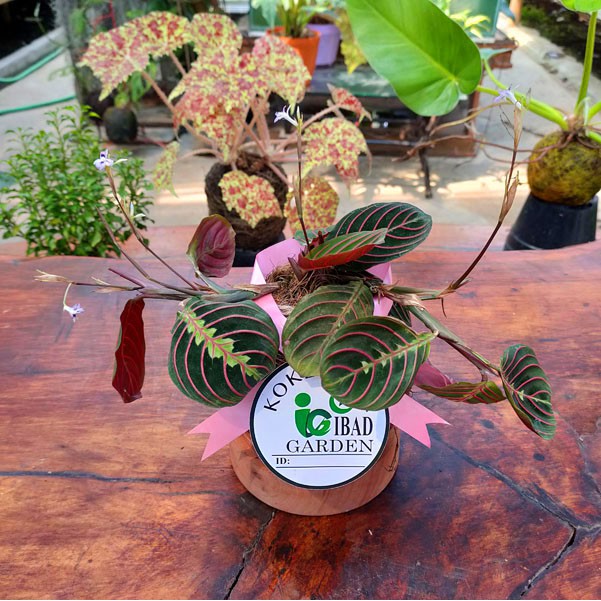 TANAMAN HIAS DALAM RUANGAN Kokedama Calathea leuconeura fascinator