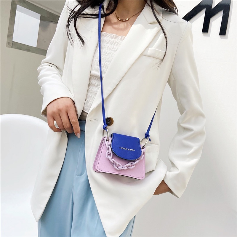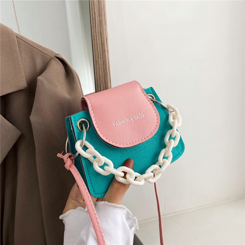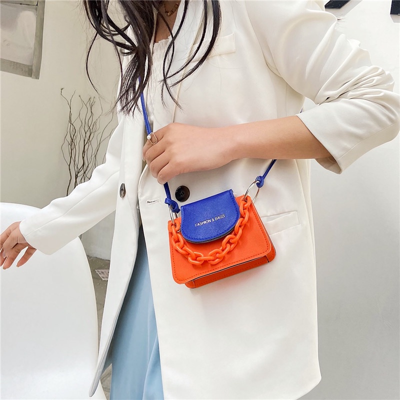 TAS Neon MINI WARNA WARNI WANITA Gen Z Warna Warni Tas Dompet Wanita Persegi Kecil Tas Lucu Rantai Red Ocean Tas Selempang Fashion 22