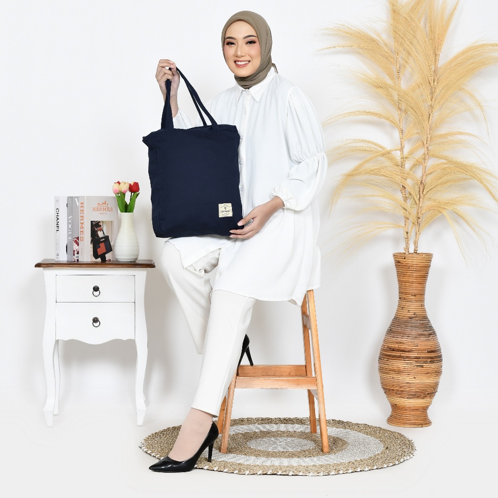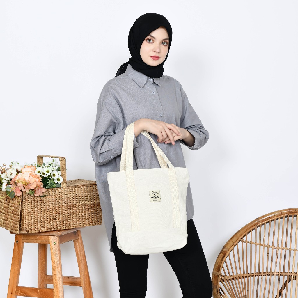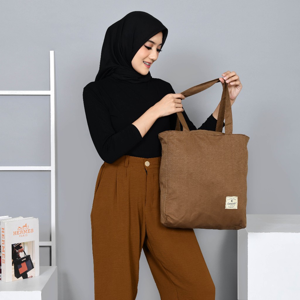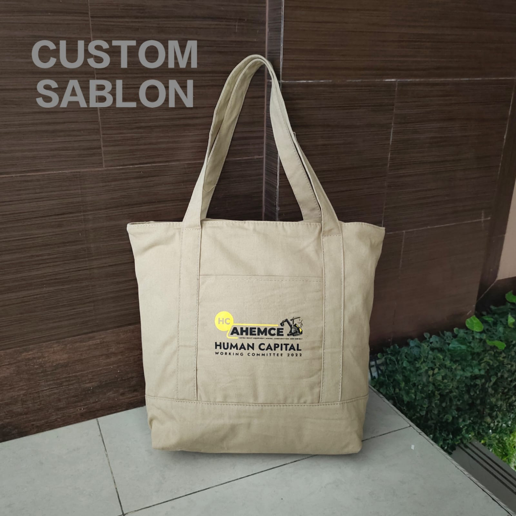 TAS TOTE BAG RESLETING KULIAH WANITA BAHAN CANVAS TEBAL LEMBUT BISA CUSTOM SABLON UNTUK TAS SEMINAR