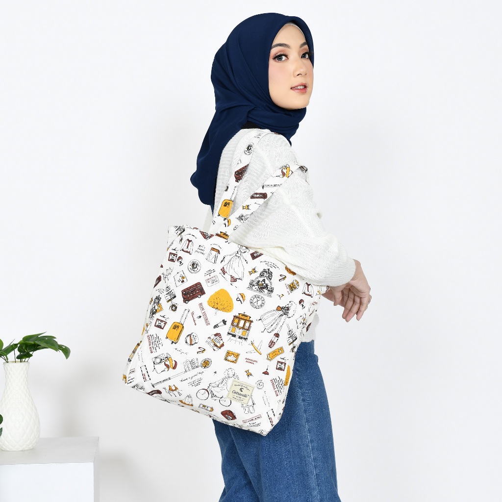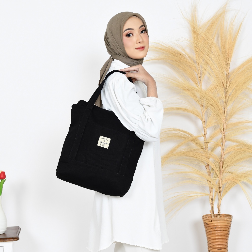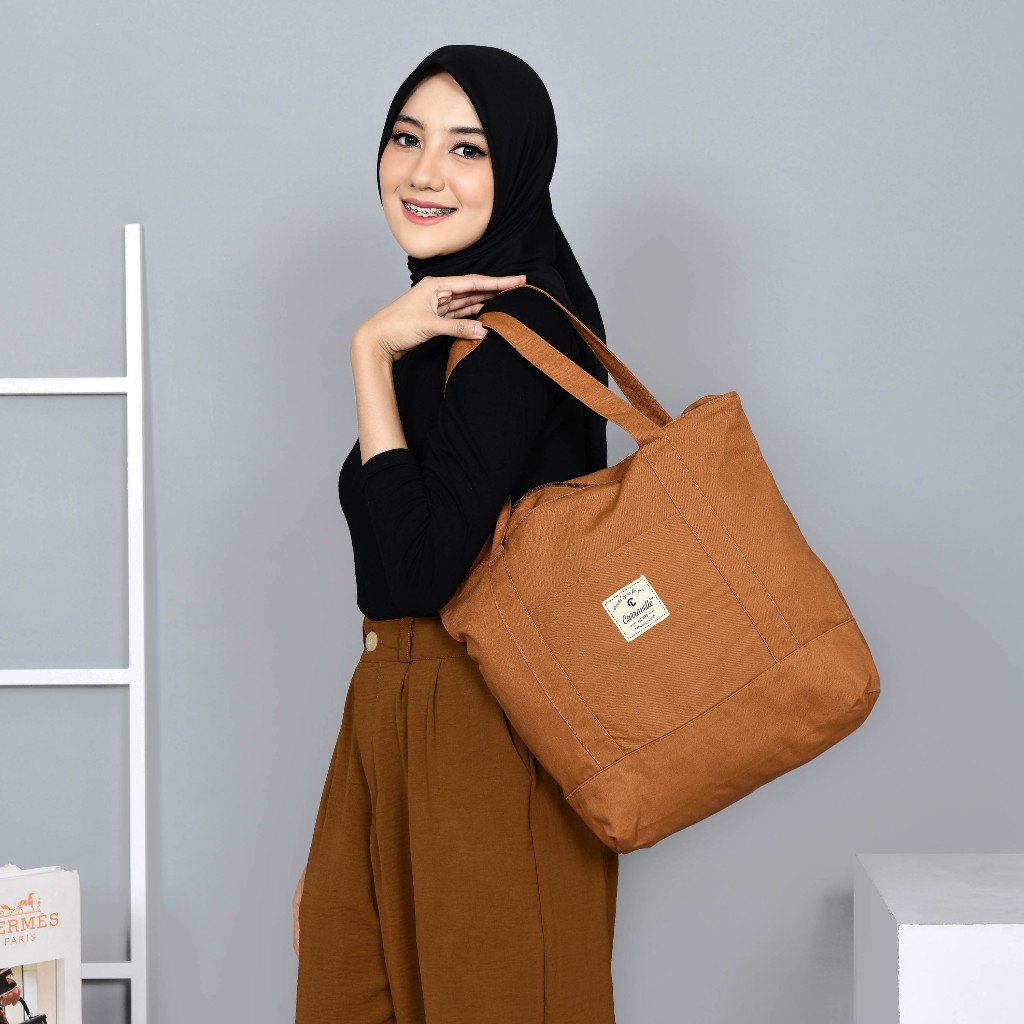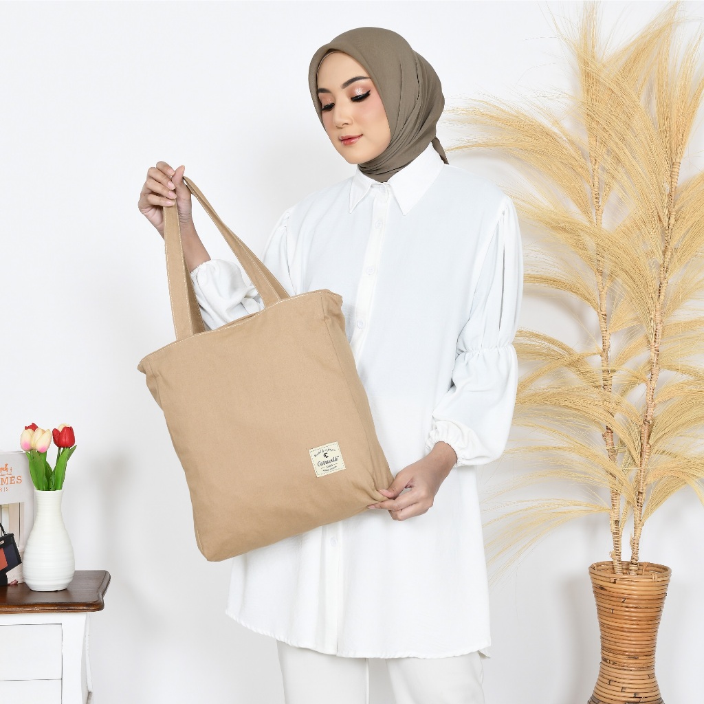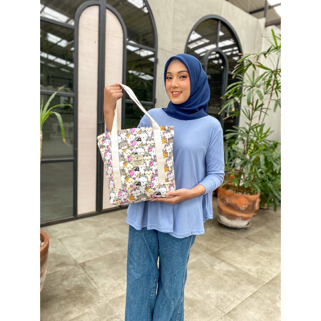 TAS TOTE BAG RESLETING KULIAH WANITA BAHAN CANVAS TEBAL LEMBUT BISA CUSTOM SABLON UNTUK TAS SEMINAR