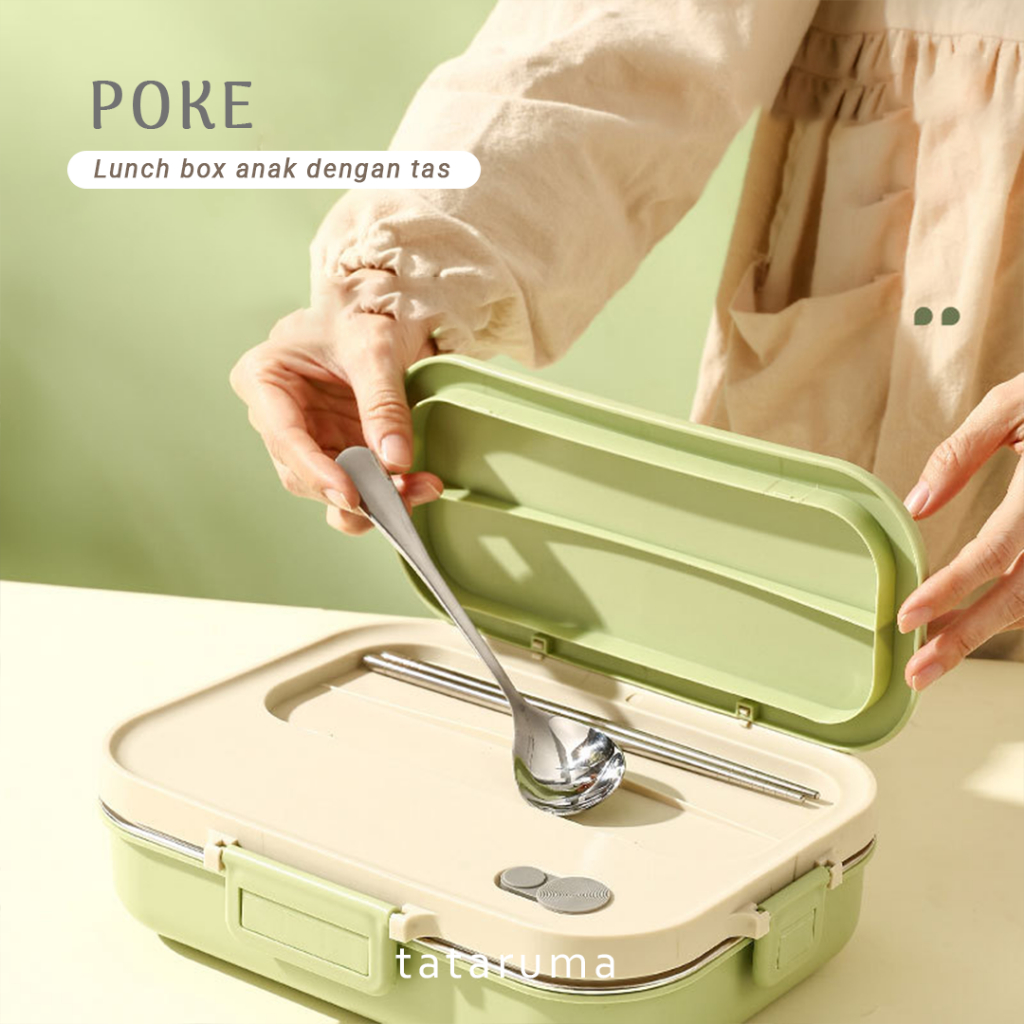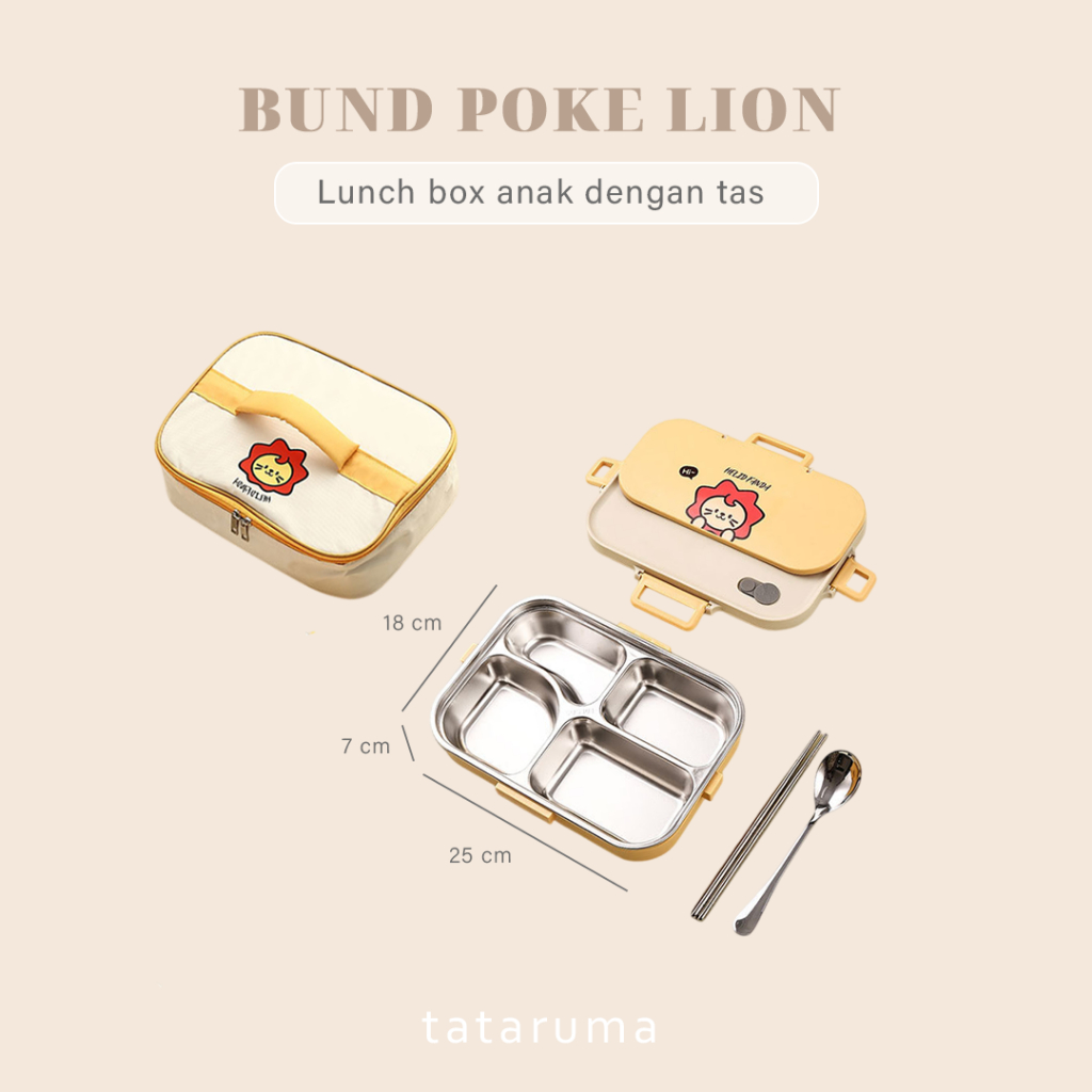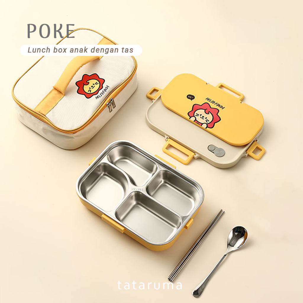 TATARUMA Poke - Lunch Box Kotak Bekal Stainless 304 Sekat FREE Sendok Sumpit dengan Tas Lucu Singa Panda Beruang Tempat Makan Lion Bear