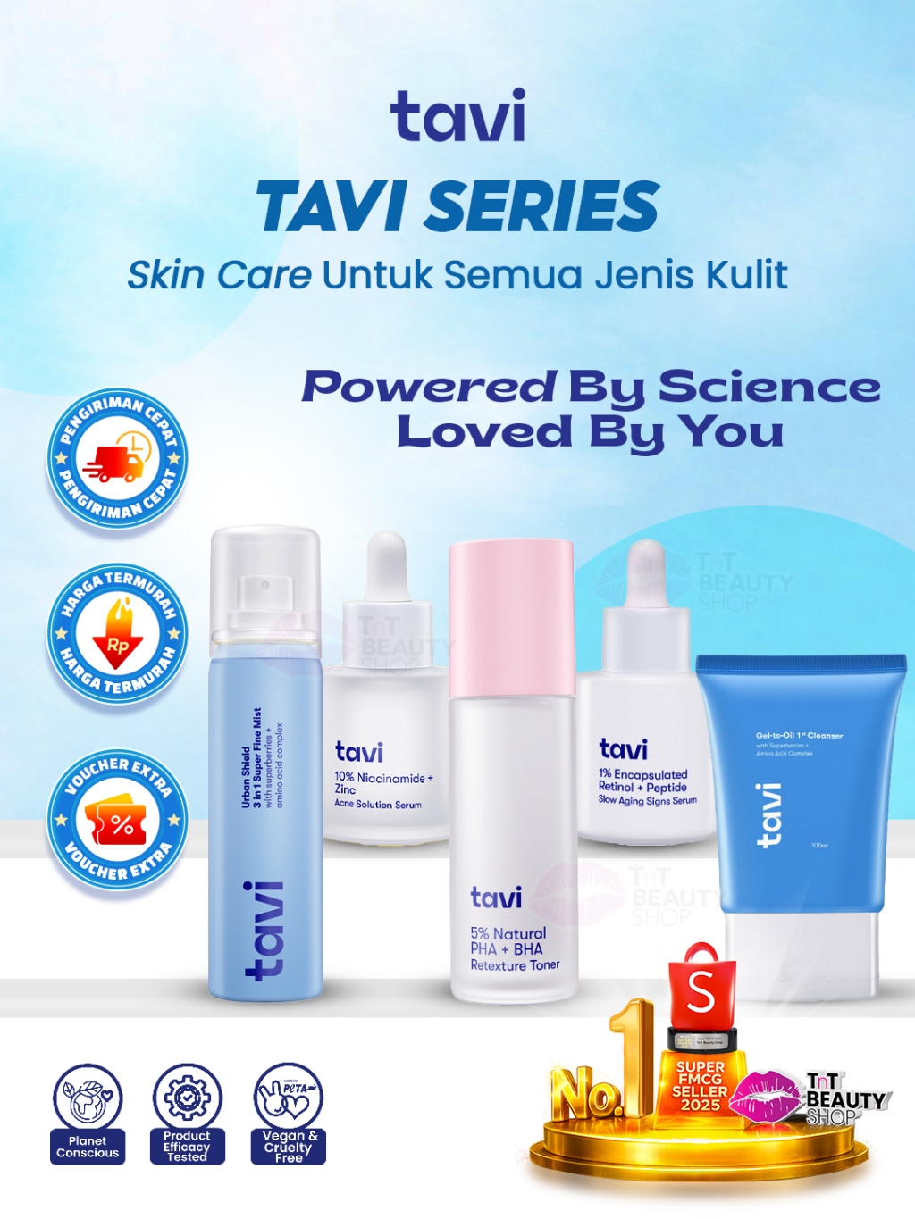 TAVI SERIES | TAVI 5% Retexture Toner - TAVI 10% Acne Solution Serum - TAVI 1% Encapsulated Retinol Serum - TAVI Urban Shield 3 in 1 Super Fine Mist | TnT Beauty Shop