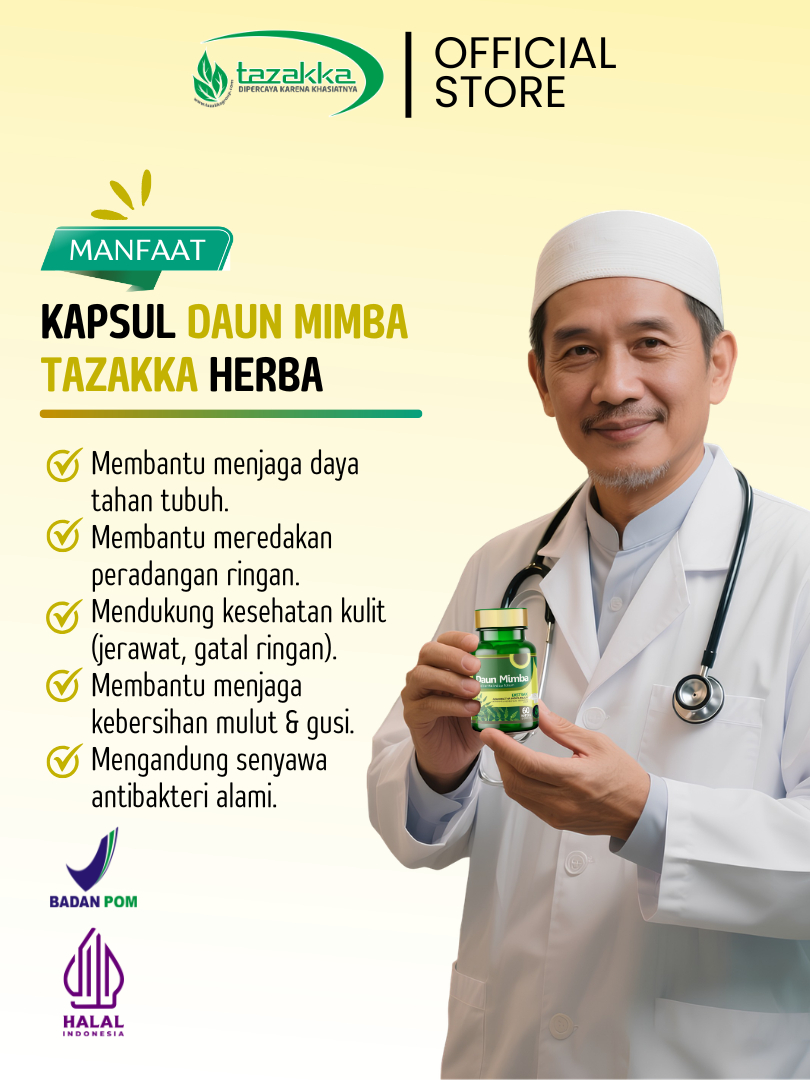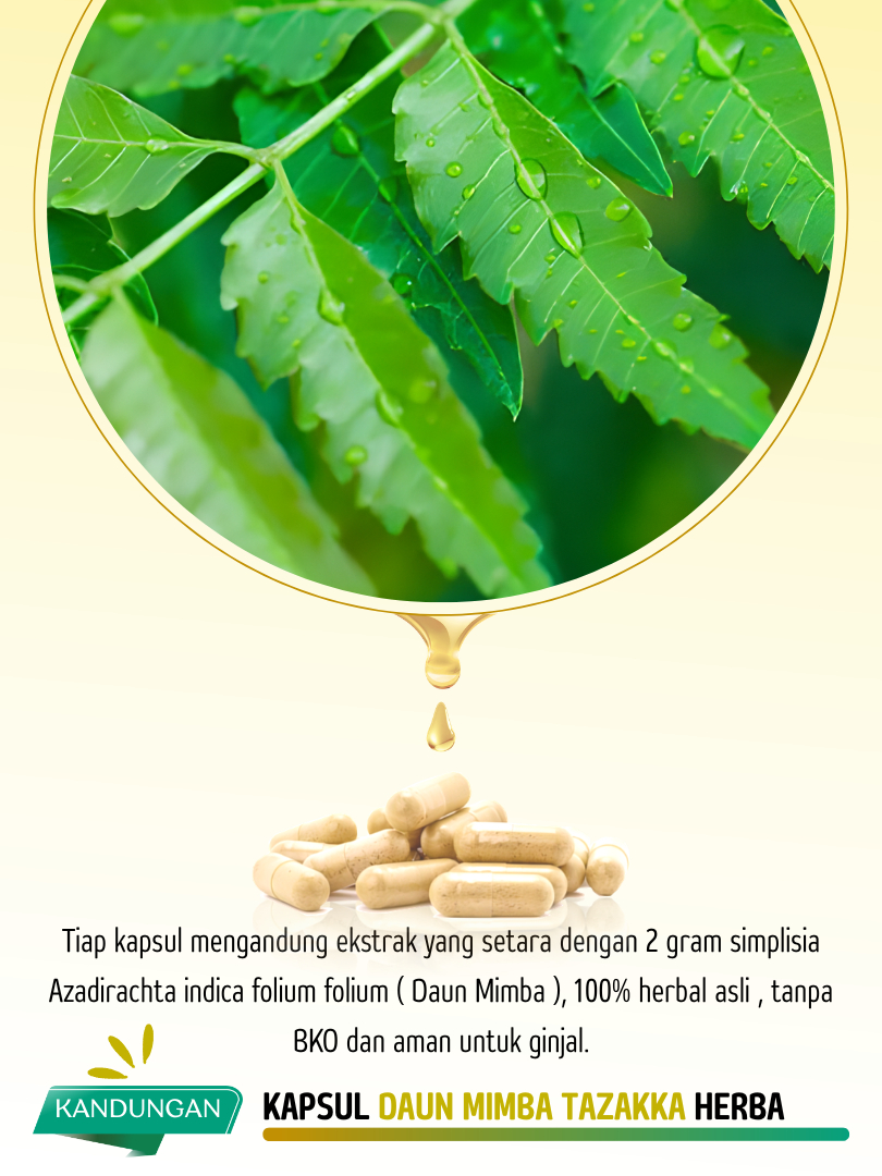 TAZAKKA Ekstrak Kapsul Daun Mimba Original Isi 60 Pil Jamu Herbal Alergi Obat Gatal Jamur Kulit