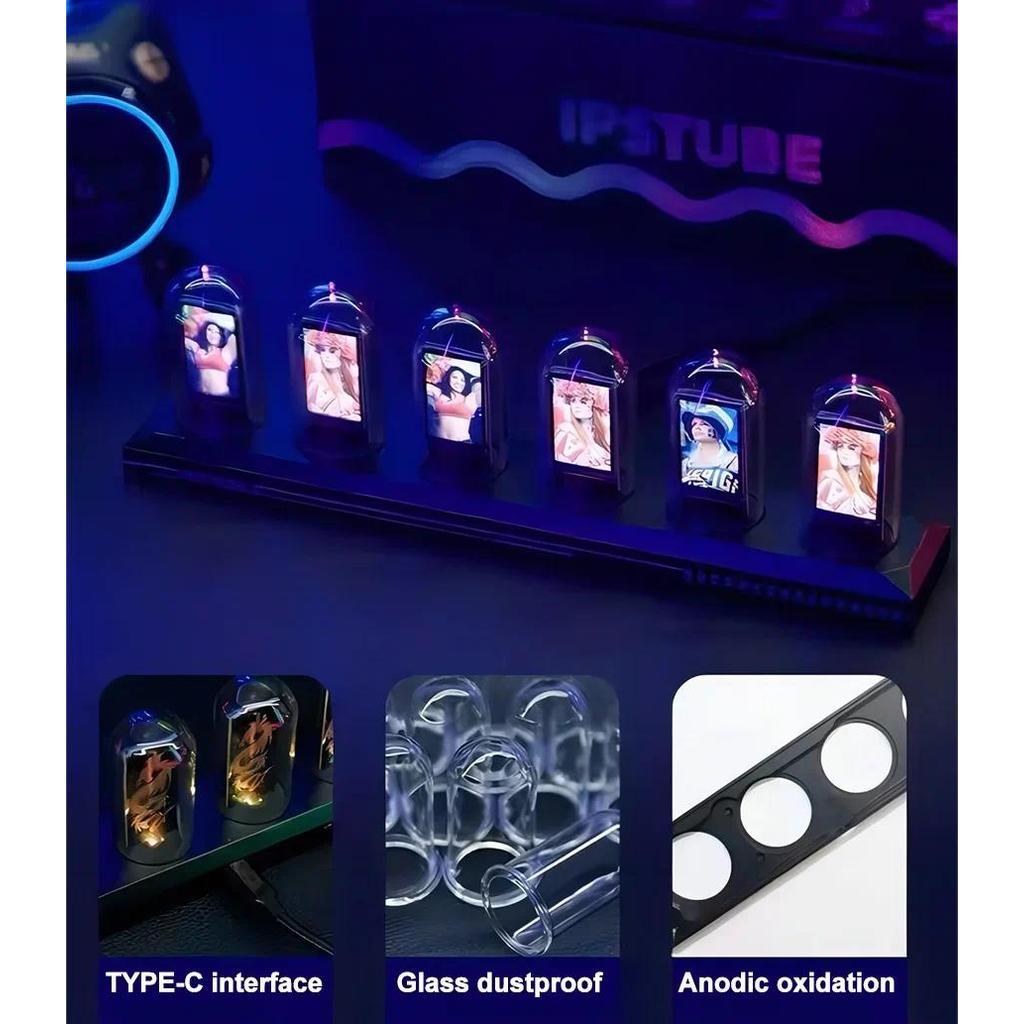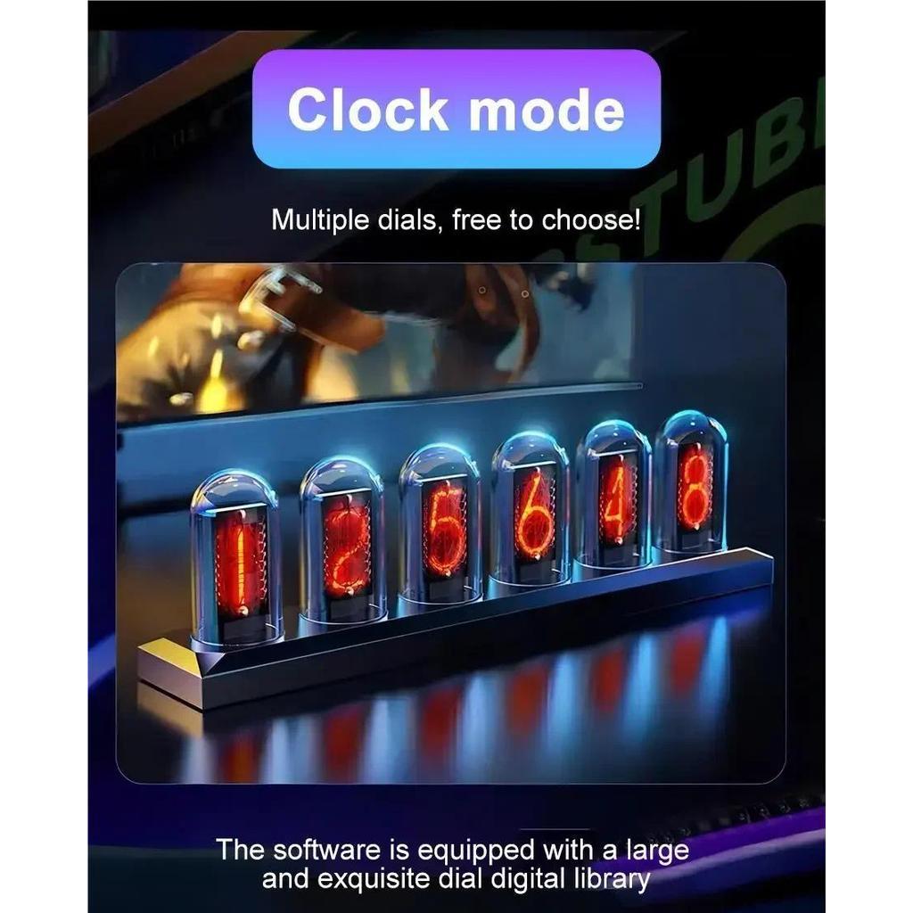 TBT Pseudo Glow Tube Table Clocks Aluminum Alloy RGB Desk Clock Retro Creative Digital Clocks IPS Computer Desktop DIY Ornaments