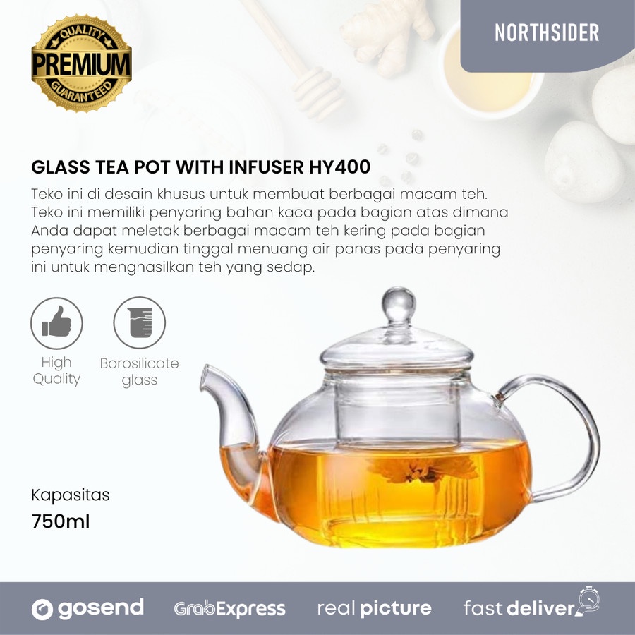 Tea pot glass infuser 400ml | teko teh saringan kaca - HY400