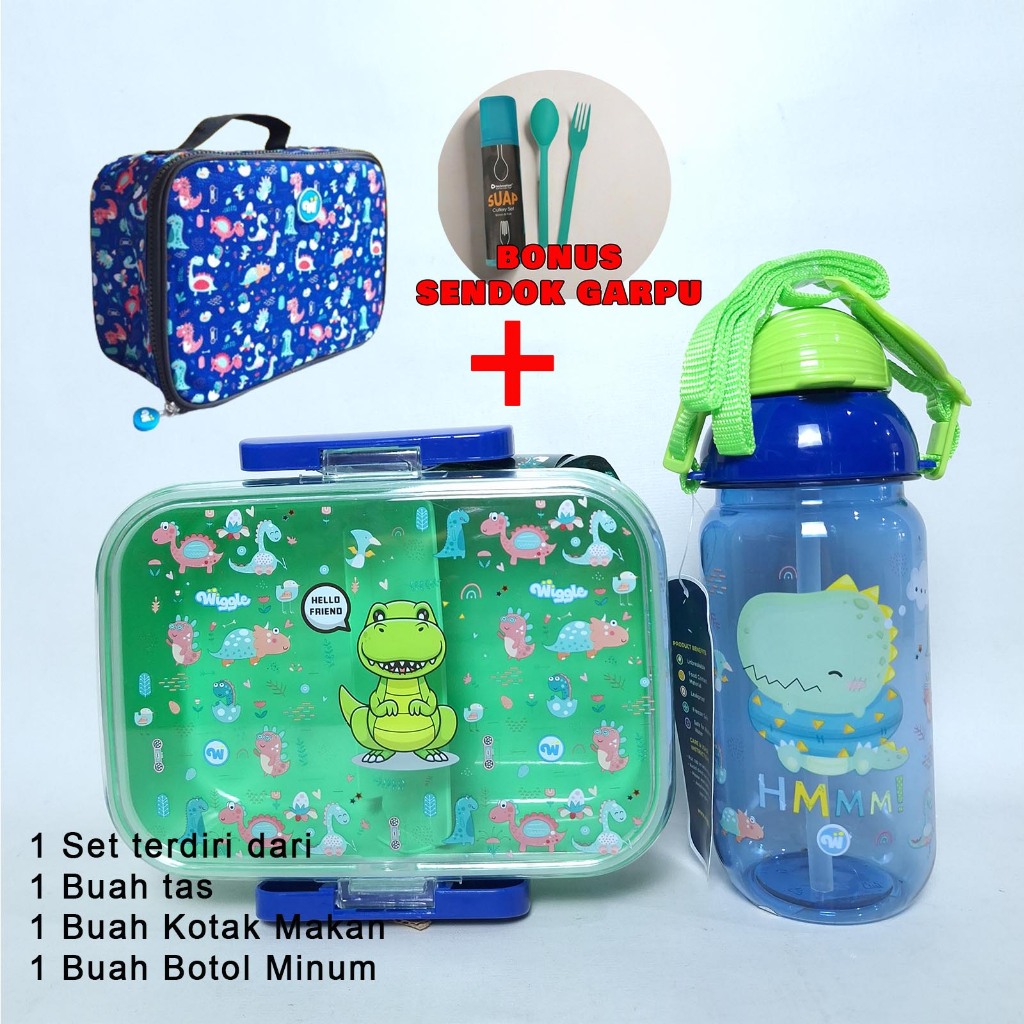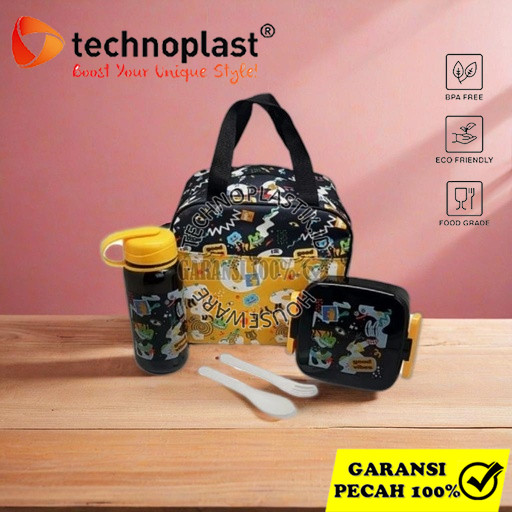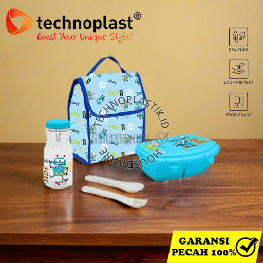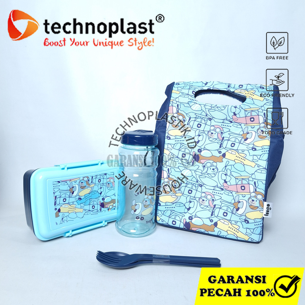 TECHNOPLAST Lunch Box Set Lungo Kids Rabitspace Lunch Box Botol + Sendok Garpu & Tas