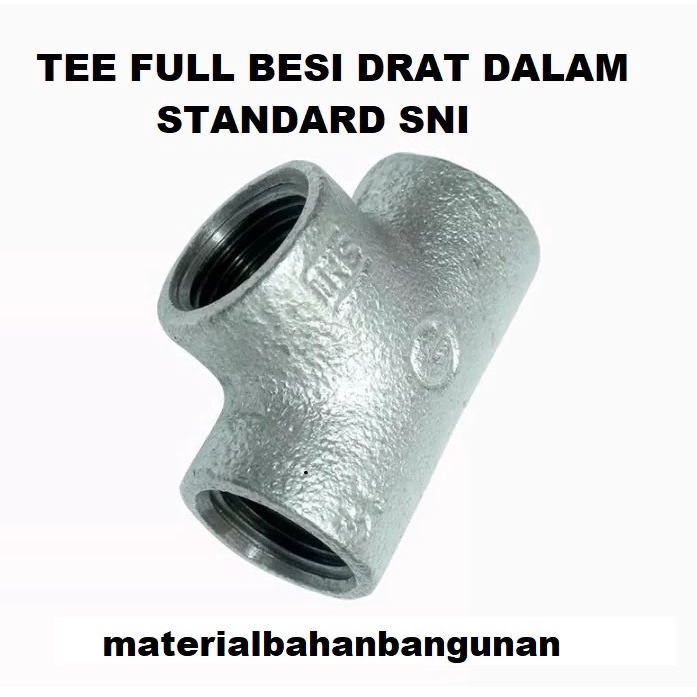 TEE Full Besi 1/2 Inch Sambungan Pipa Besi Cabang 3 Welding Las SNI TDD Full Besi 1/2 Inch Tee Drat Dalam Fitting Pipa Saluran Air 3 Arah Piting Welding Las Ti T Derat Ledeng