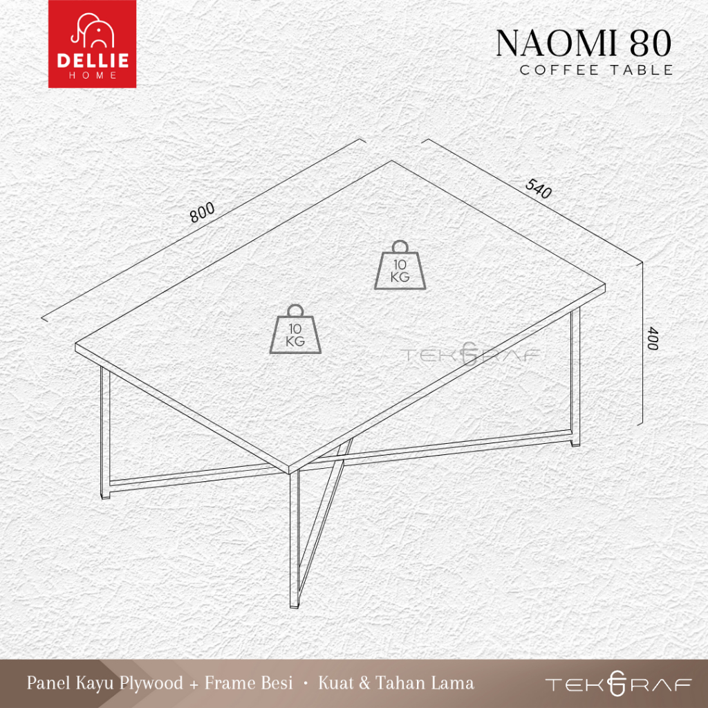 [DELLIE HOME] Tekgraf Naomi 80 GS/GE/GM/GB Meja Tamu Coffee Table Kayu Kaki Besi