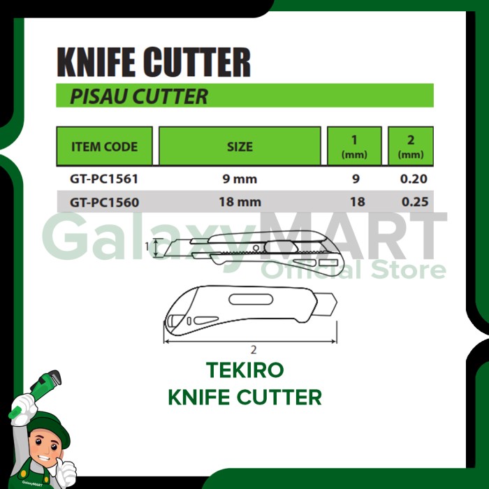 TEKIRO Pisau cutter besar 18 mm dan kecil 9 mm